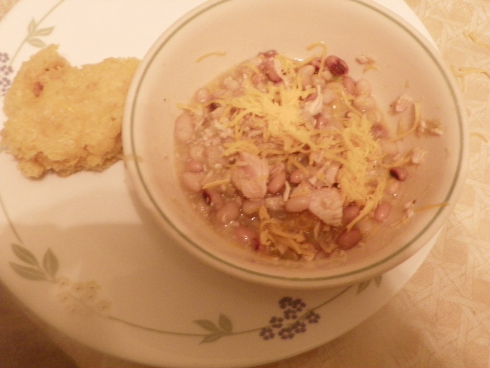 For dinner last night I started with Paula Dean’s White Been Chili from Foodnetwork.com.