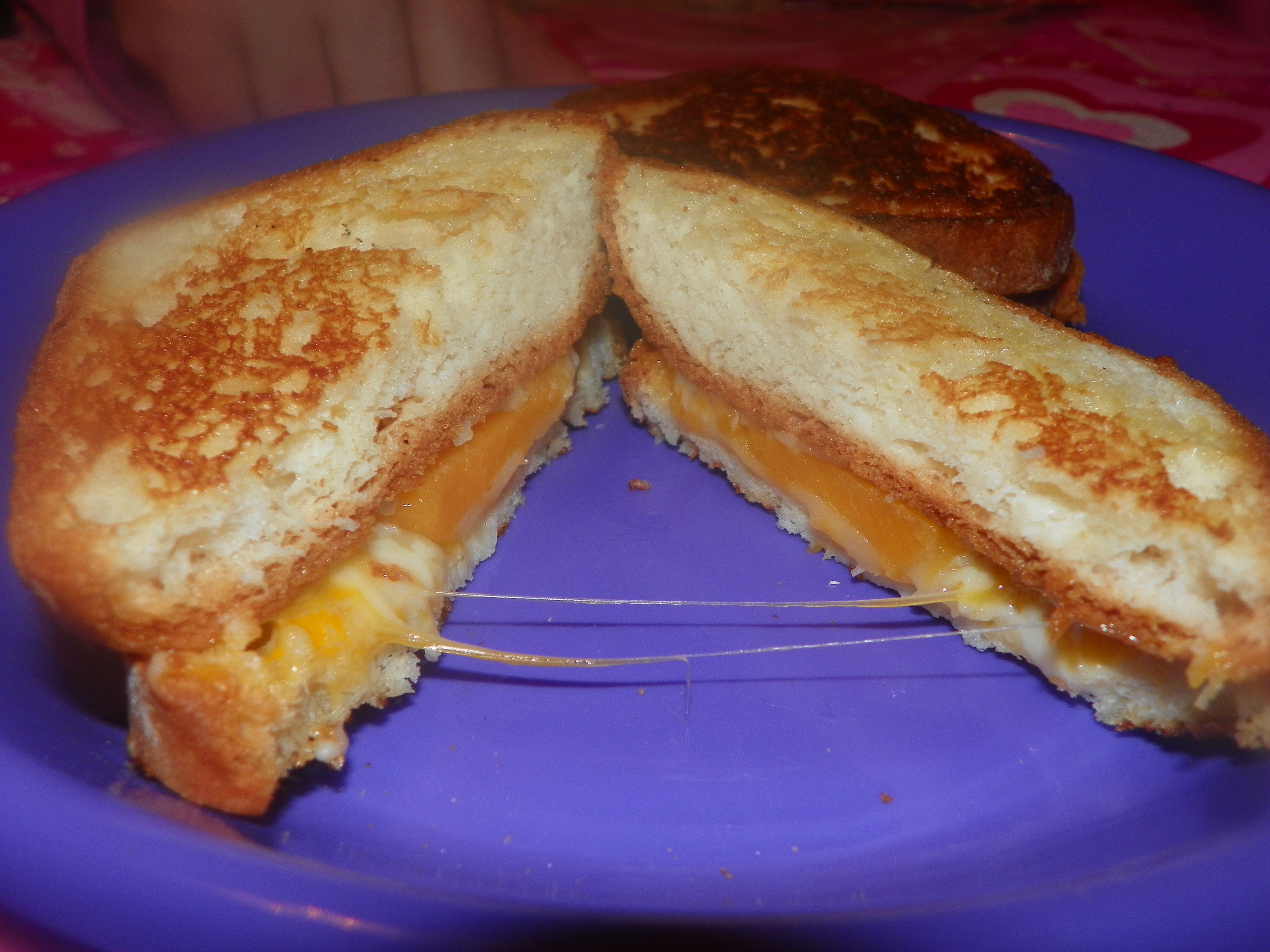 Tonight’s dinner was a simple grilled cheese sandwich made with cheddar, Swiss and mozzarella cheese.