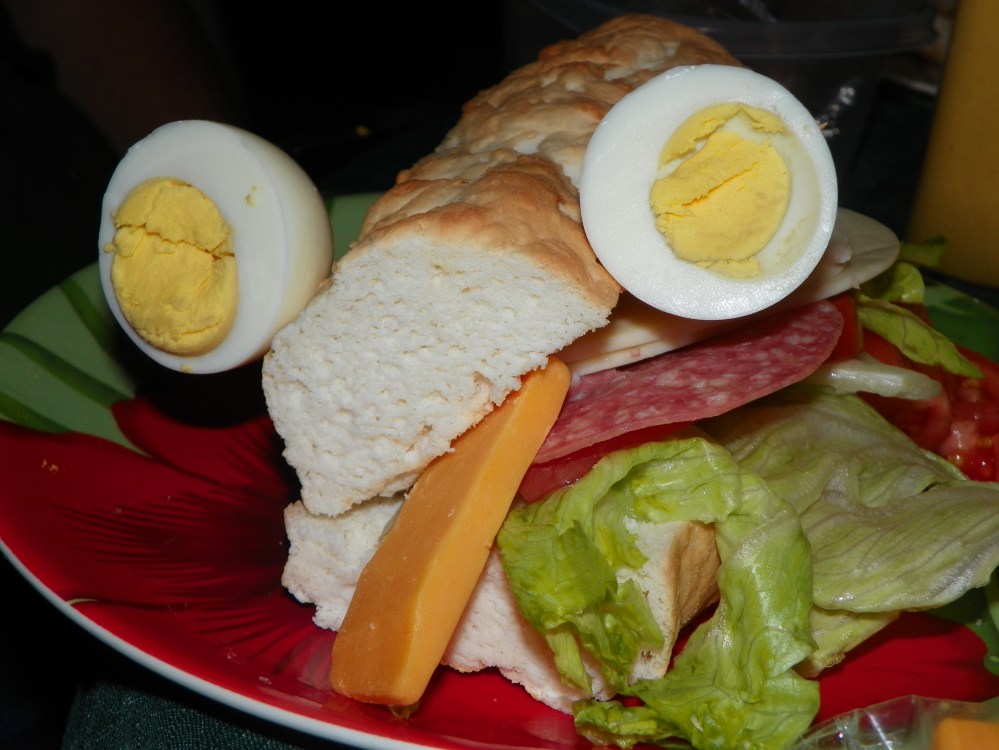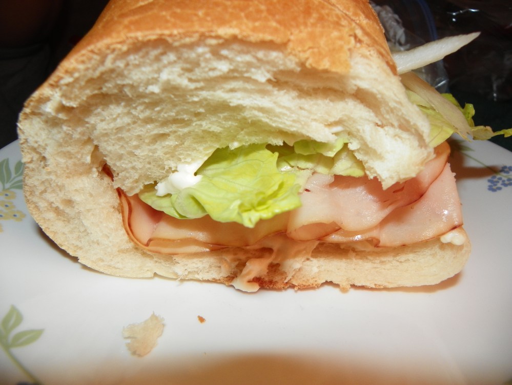 Our dinner tonight was Make Your Own Homemade Subs. I bought turkey, ham, roast beef and Genoa salami for meat. Provolone, Swiss and cheddar cheeses with lettuce, tomatoes, onions and banana peppers for toppings. Two loaves of Italian bread – one regular, one gluten-free.