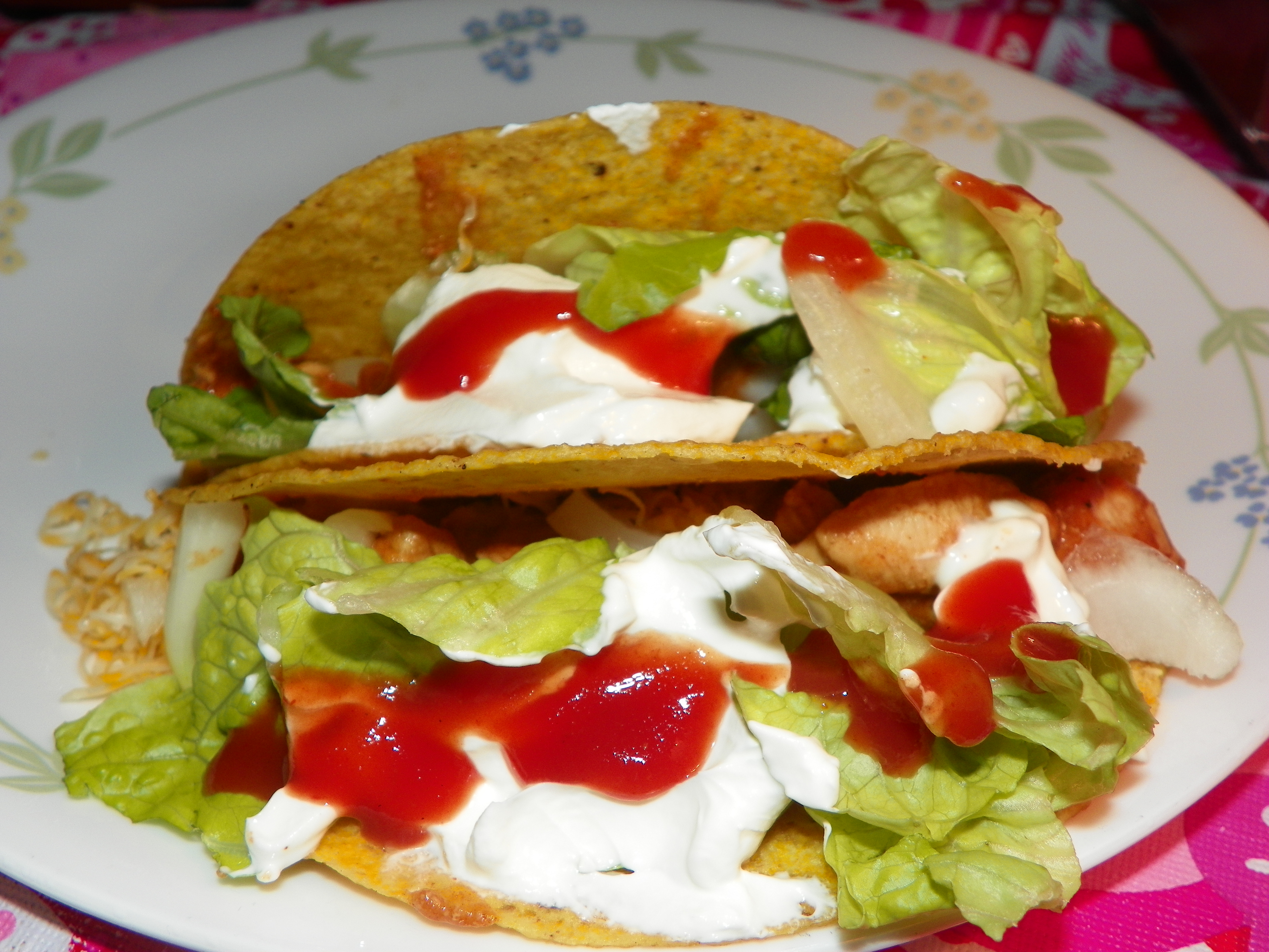 In my endless array of different taco dishes this is my chicken tacos. I used the recipe for Taco Seasoning I Recipe at Allrecipes.com