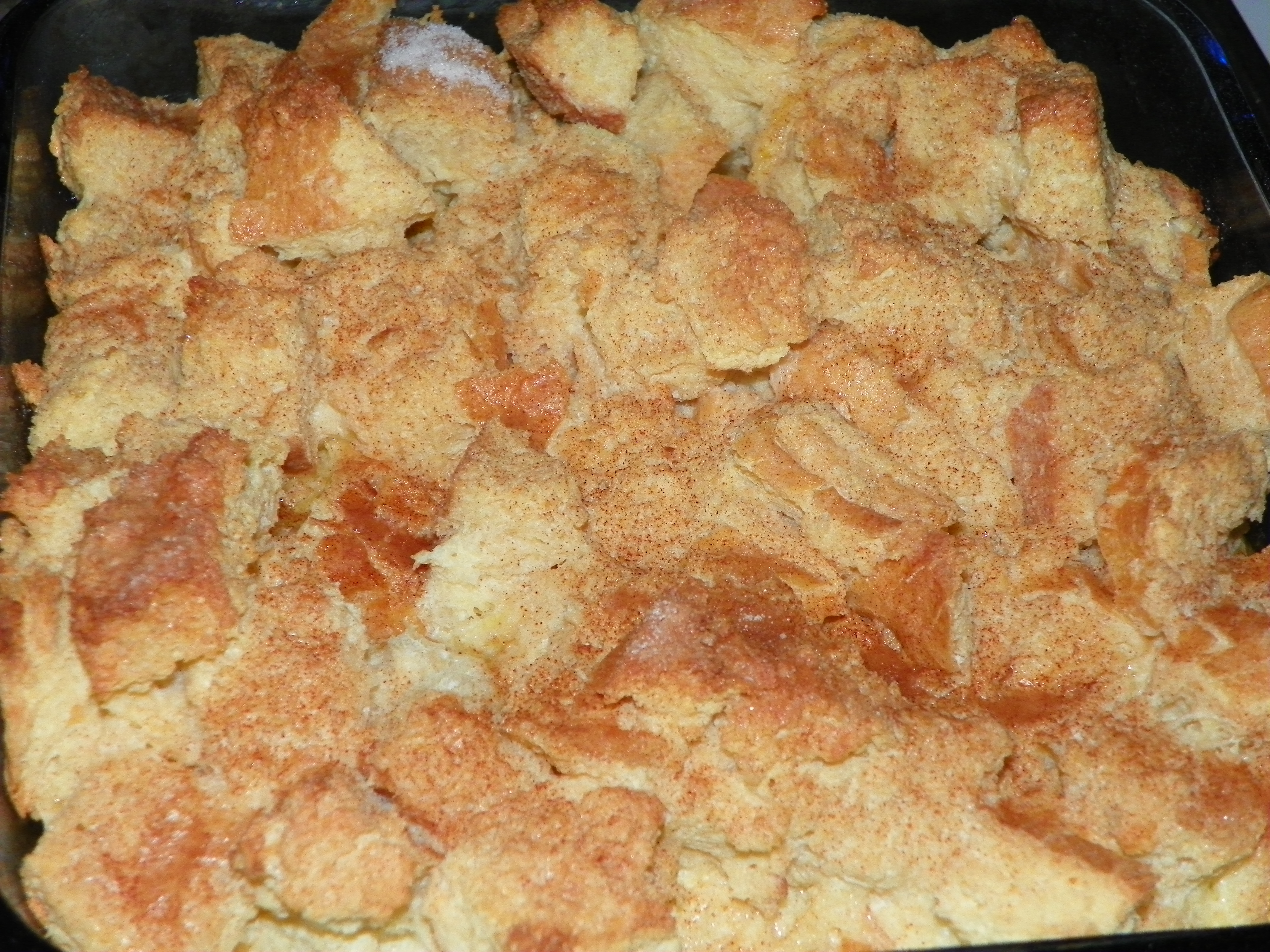 I started with this recipe for French Toast Casserole and then modified it according to the suggestions in the comments section and my own families tastes.