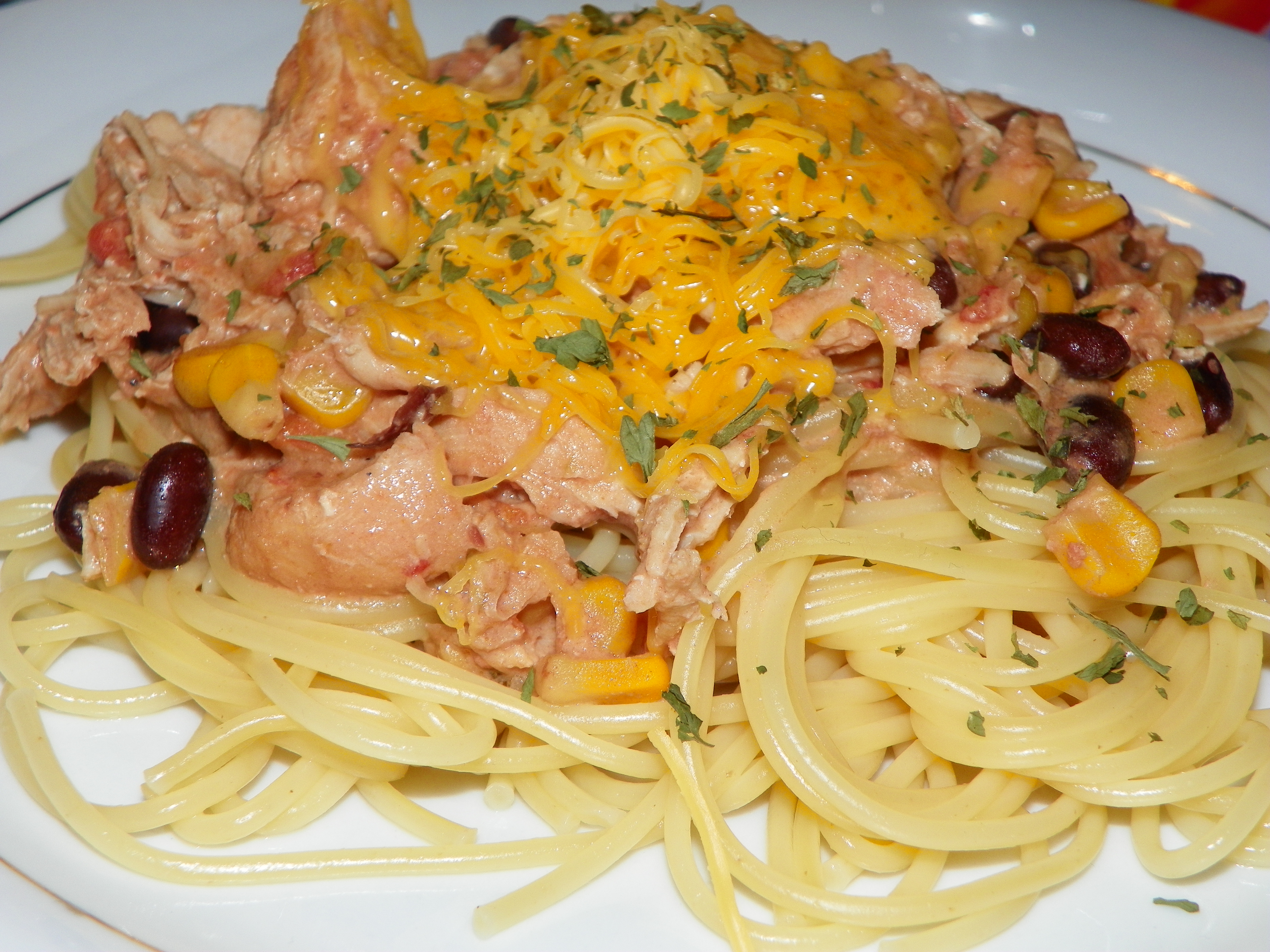 - Stir well. Shred chicken with two forks before serving over pasta or rice.