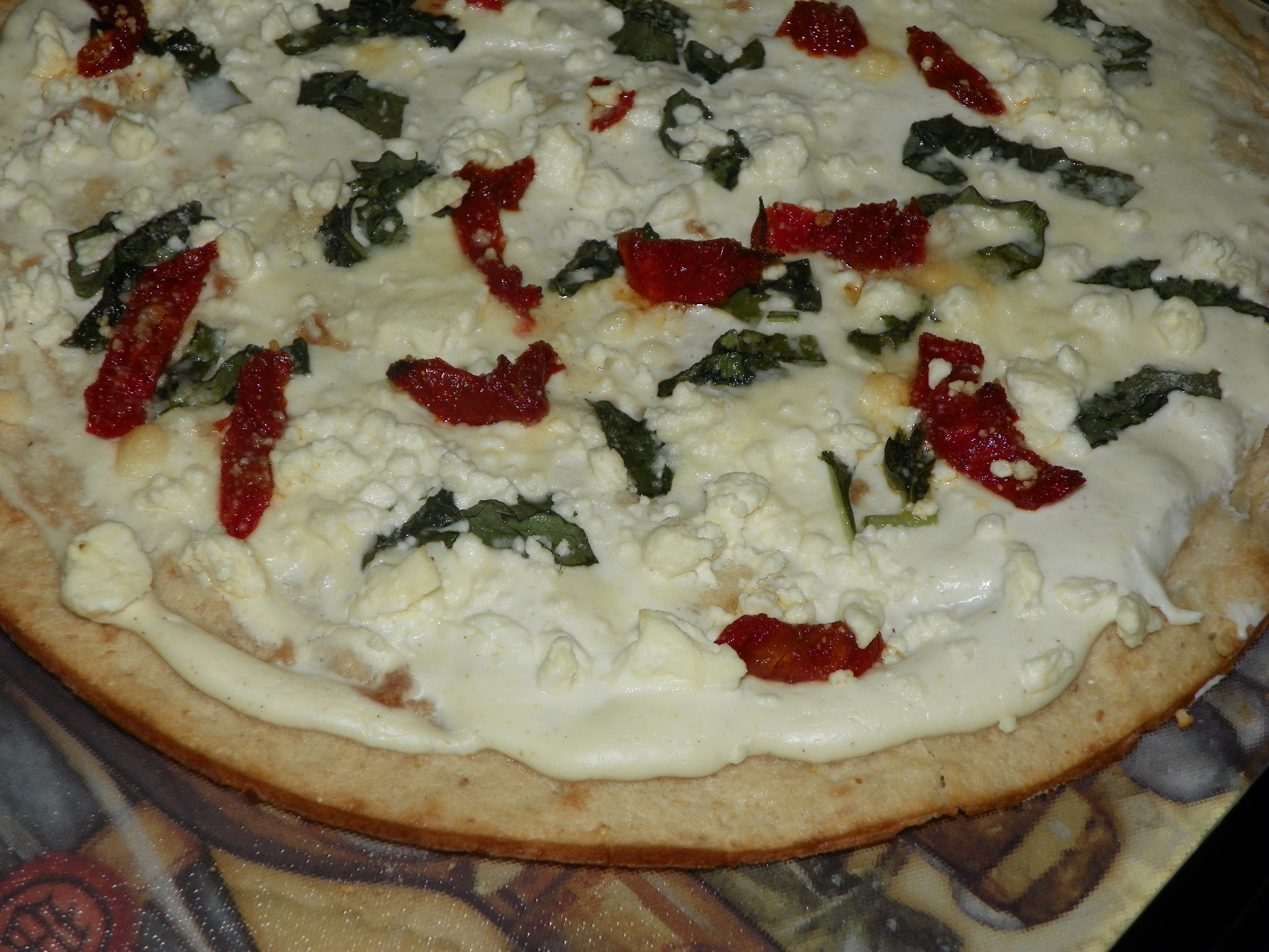 - Place slice of sun-dried tomatoes on the pizza. I only used a few as my family tends not to like them as much but put as many on as your family would like.