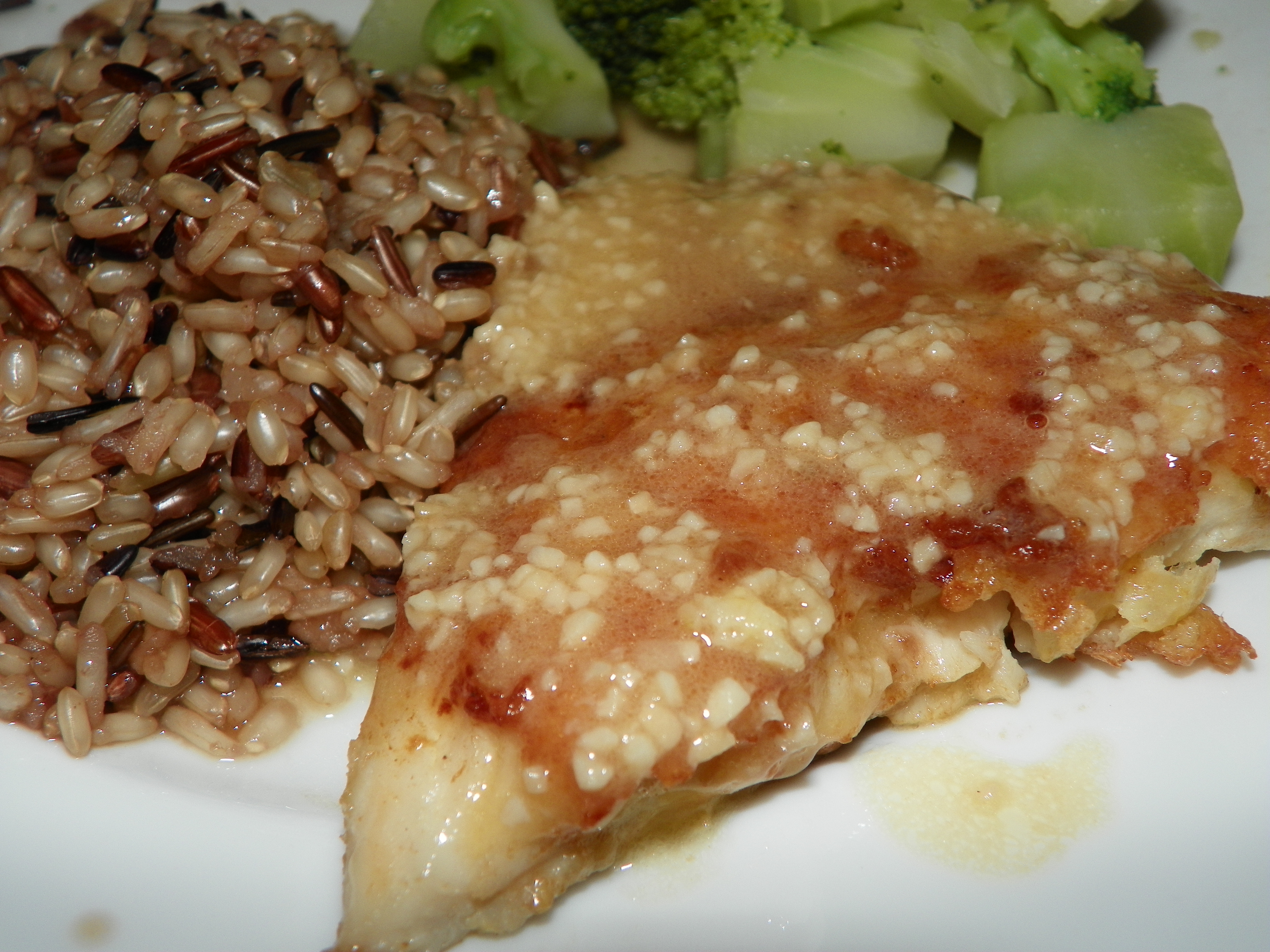 We had chicken thawing in the fridge and not very much else on the cupboard shelves. I started searching for recipes and found in Every Day with Rachel Ray a recipe for Chicken or Fish Francese-wiches. Well, I did not have bread, arugula, paprika, lemons or tomatoes but being adventurous as I am decided to jump in any way and see what I could come up with.