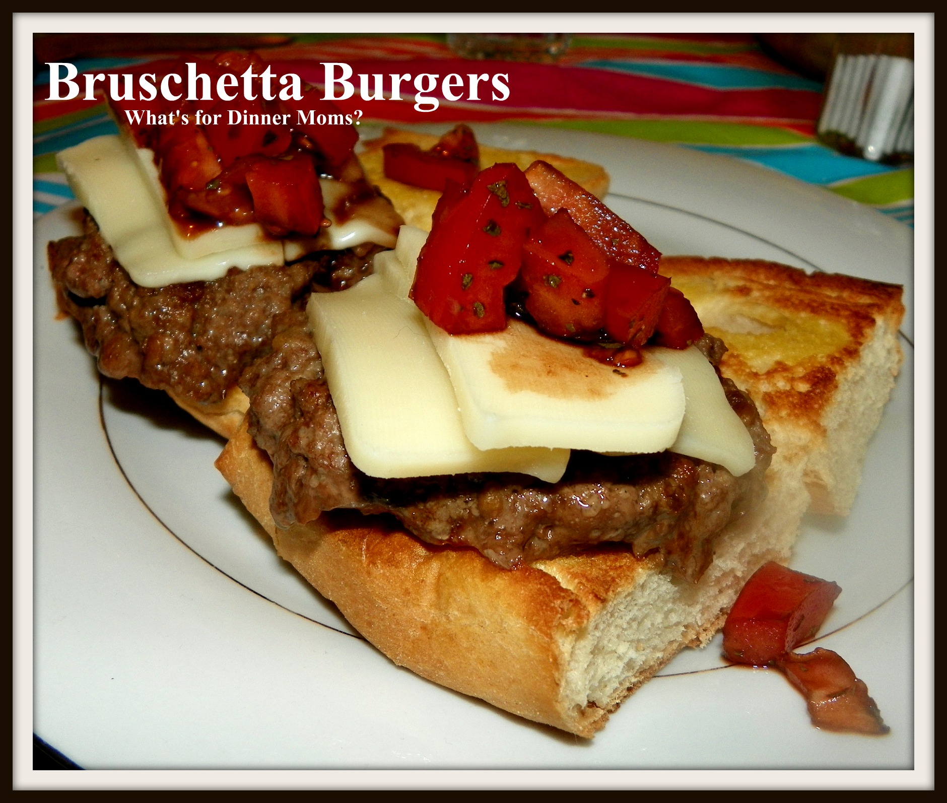 - Assemble a burger by placing it on a bun with mozzarella cheese on top of the hamburger. Use the tomato basil mixture on top of the cheese and place the bun top on the tomato mixture.