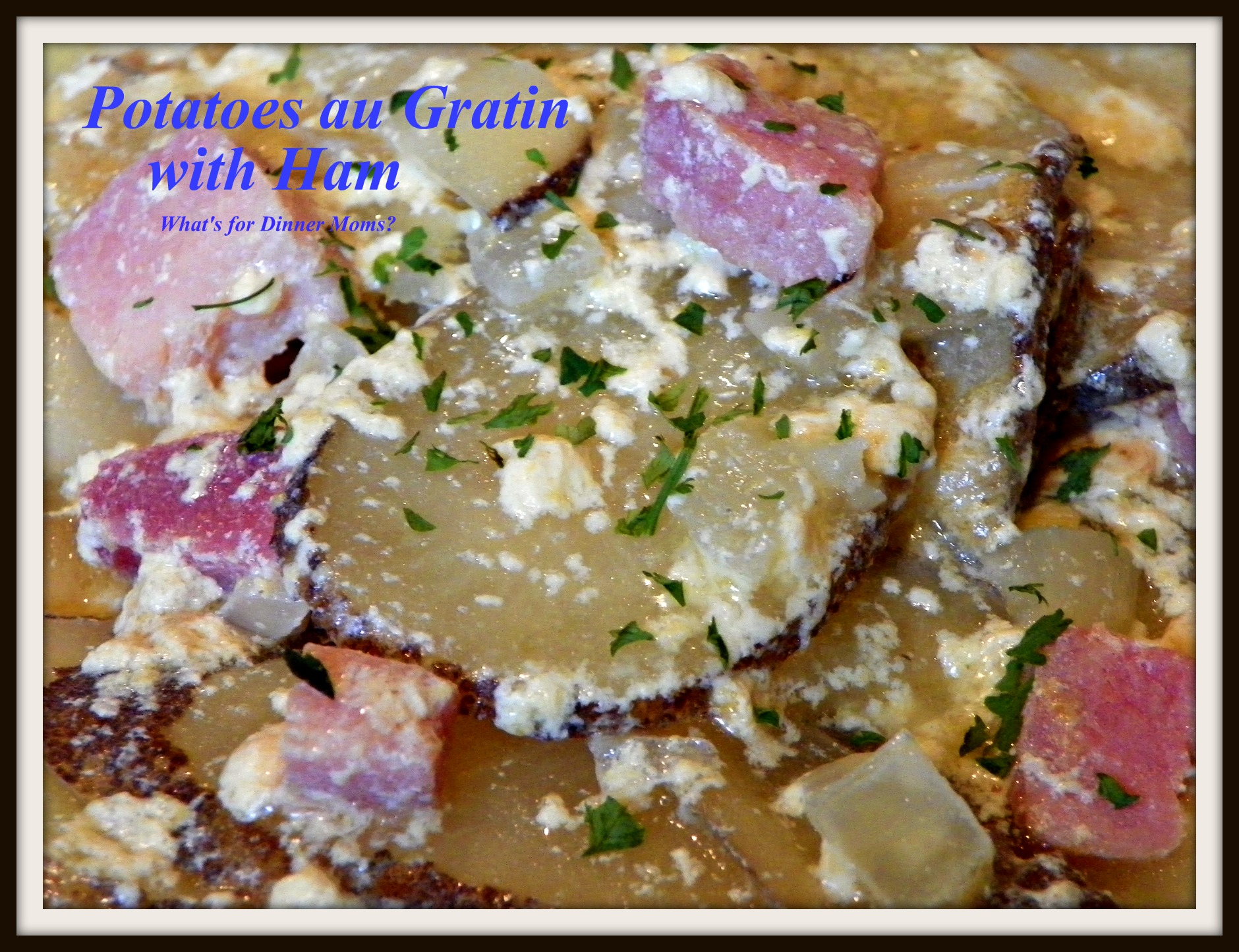 - Layer 1/2 of potatoes, all of the onion and ham in the bottom of the casserole dish.