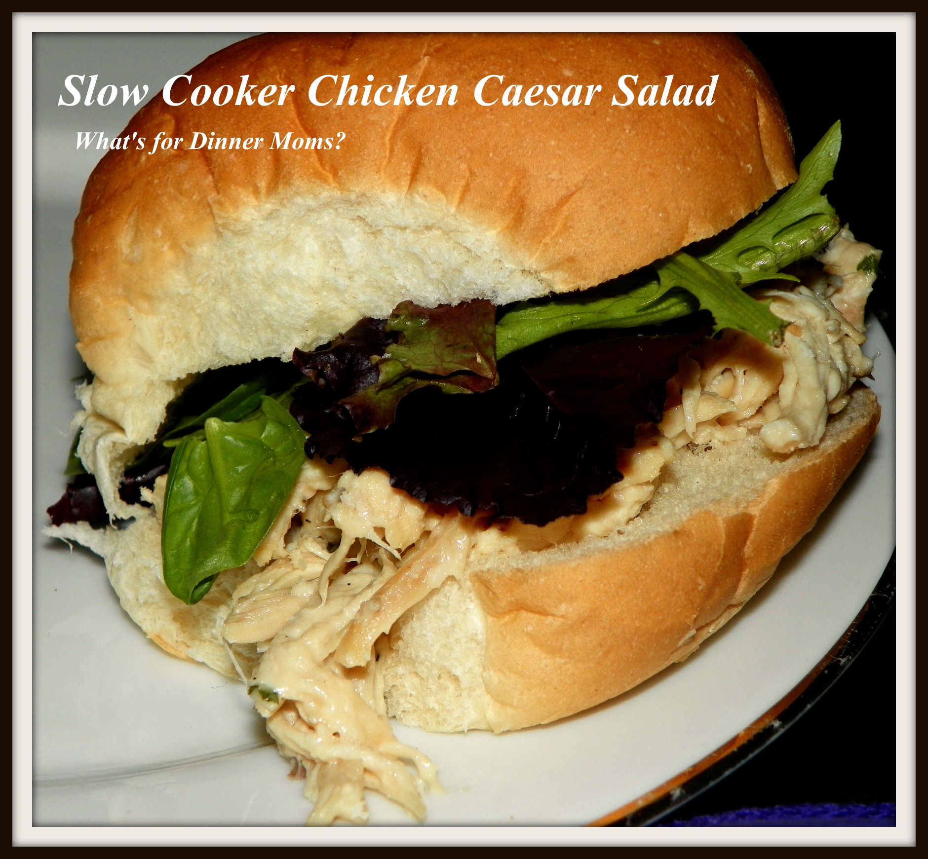 - Return the chicken to the slow cooker and shred it with two forks. Pour 1 cup of Caesar salad dressing over the chicken. IF you need a bit more add additional. Sprinkle the Parmesan cheese over the chicken.