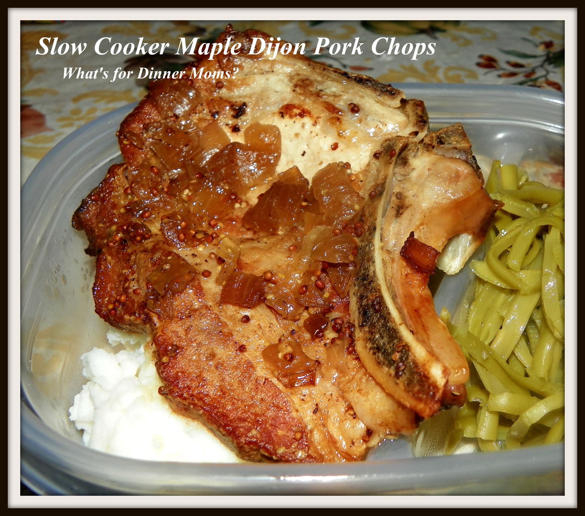 - Lower the heat to medium and add the onions. Cook until onions are just starting to soften (5-8 minutes) then add the cider vinegar, maple syrup, mustard, salt and pepper. Cook for 2 more minutes and then pour sauce over chops in the slow cooker.