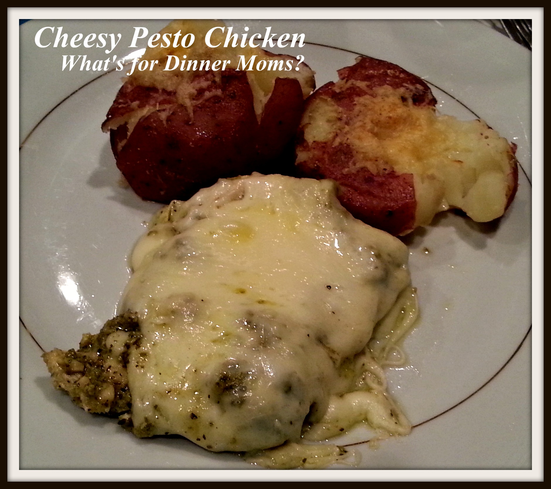 This dinner came about in part because I had chicken thawing in the refrigerator that I had to use and while looking through Pinterest for an easy meal I came across Cheesy Pesto Chicken. It was so easy I had to try it and luckily for me I had a jar of Pesto Sauce sitting in the pantry.