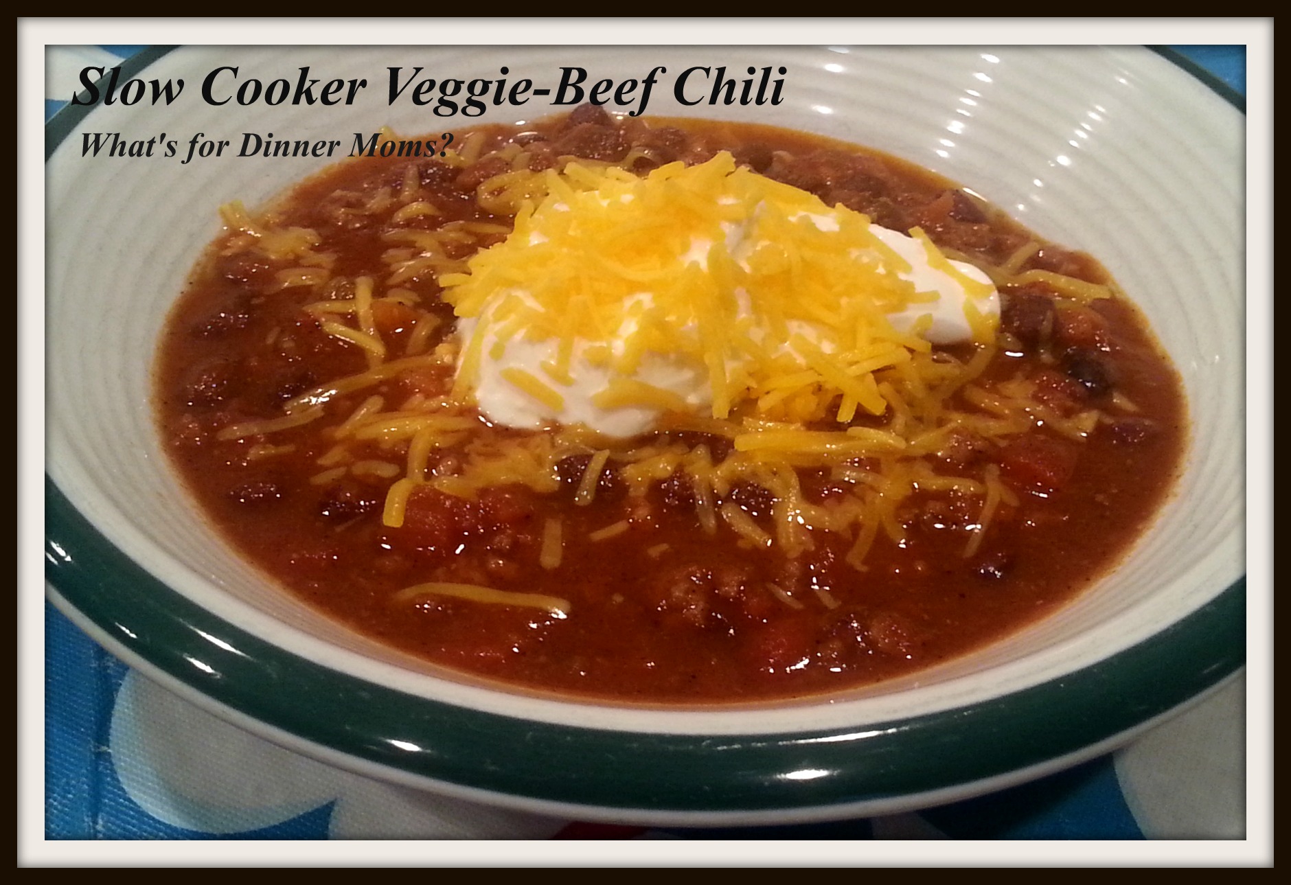 But, for those that follow me on Facebook, What’s for Dinner Moms?, saw a preview of this post yesterday. One of my resolutions was to get my family to eat more fruits and vegetables. I LOVE this chili. It can be customized to your family. Add or delete what you like or don’t like, put it in the slow cooker and out comes this amazing dish!