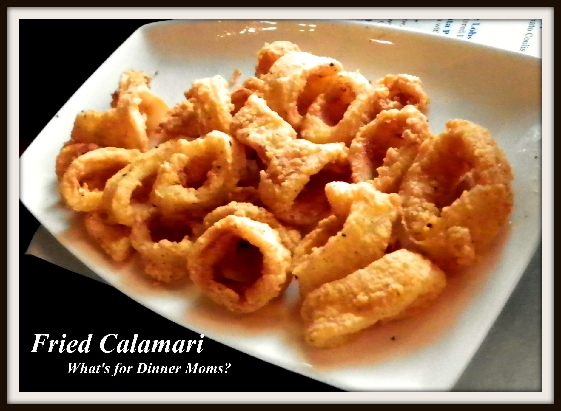 The Crispy Calamari was served on a platter. Both of my children were surprised and excited at such a large serving. There was not a piece left by the end of drinks.