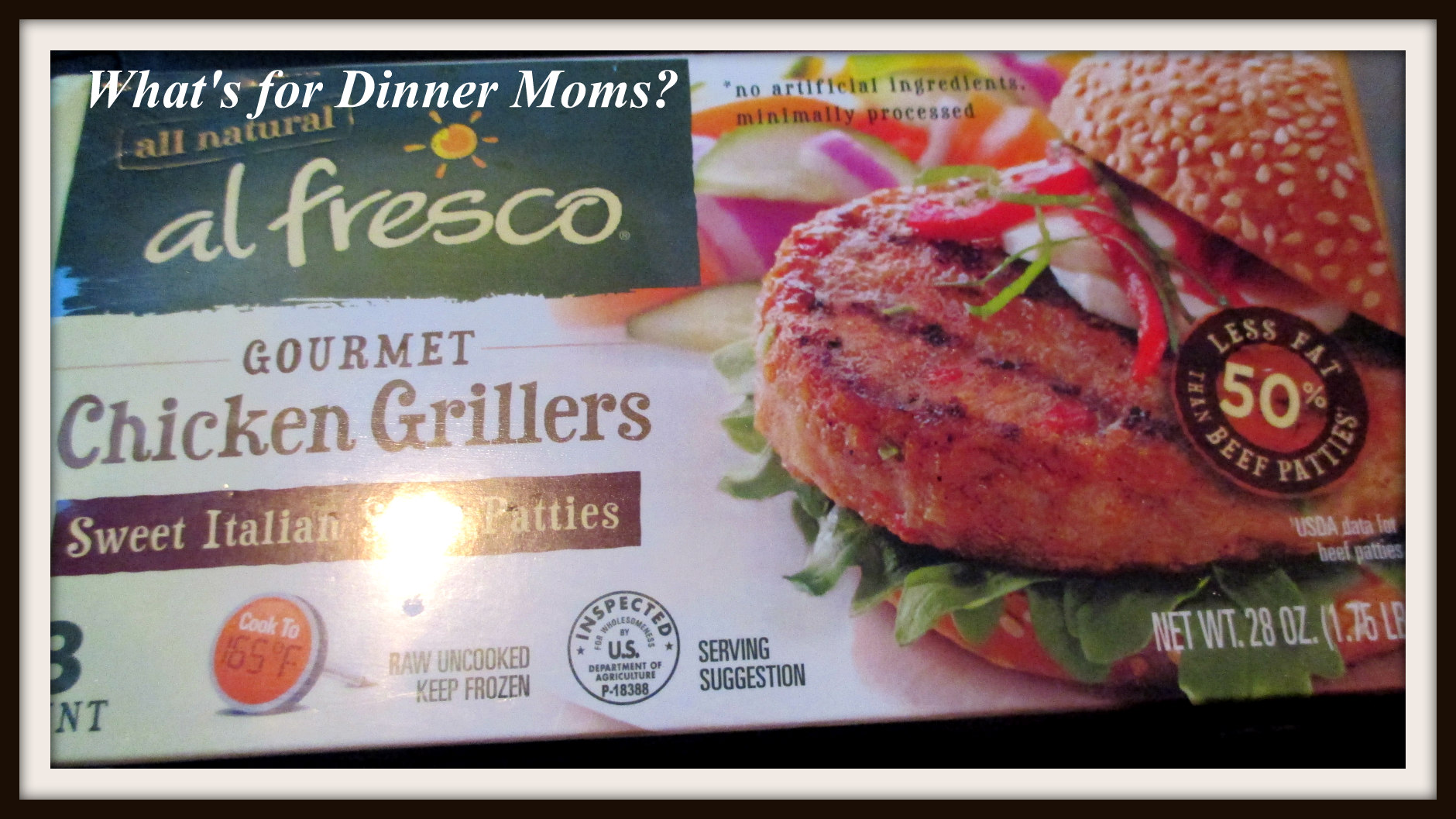 This was a really good dinner. The al fresco Chicken Grillers were even better than I thought they would be. They did taste very close an Italian sausage patty but they weren’t greasy at all which made my stomach happy and they were so much cheaper than chicken sausages at the grocery store. I will be purchasing these again. They come in a package of 8. Each child ate 2 patties and we each ate 1. We had two leftover for two lunch servings.