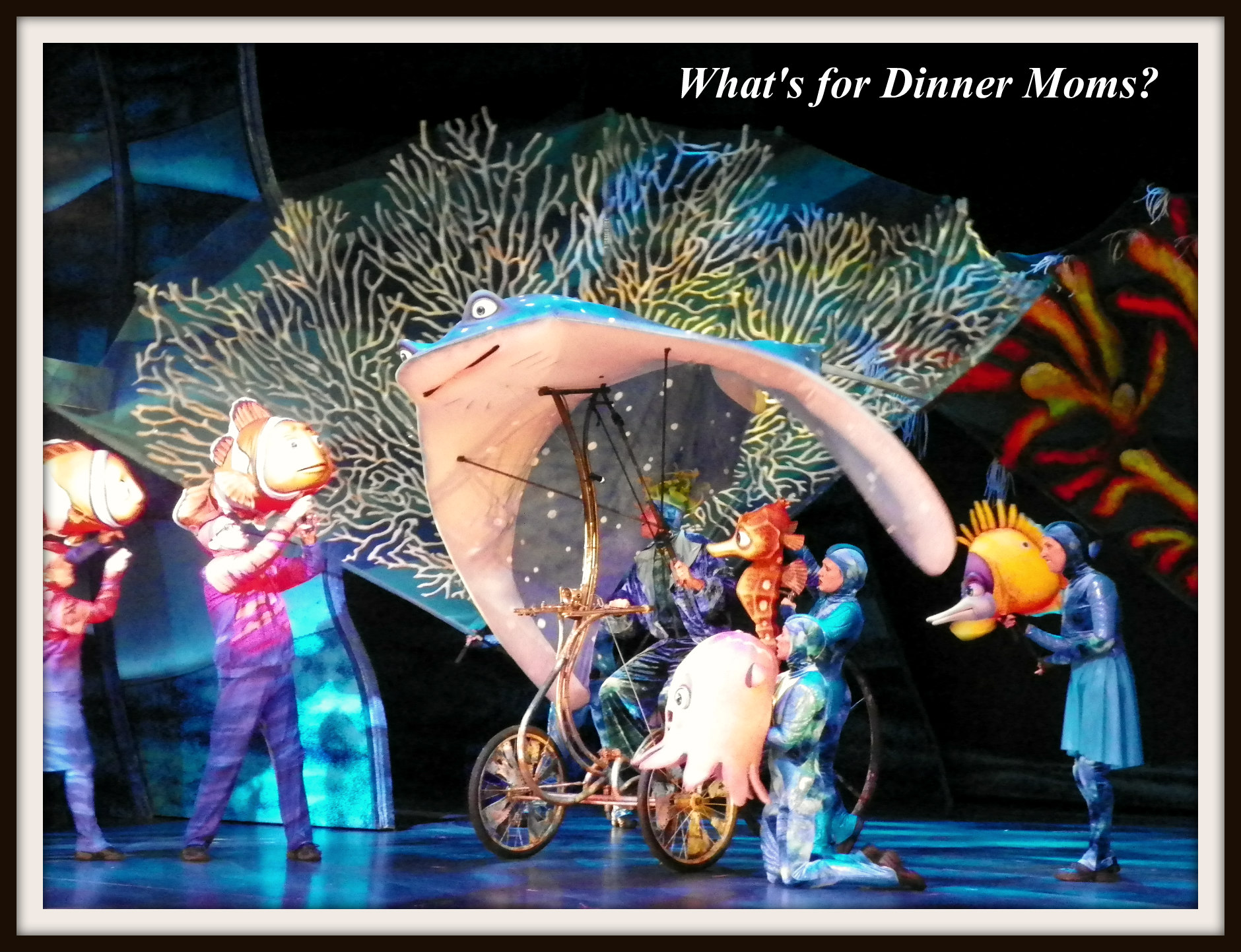 I was a HUGE fan of the previous show “Tarzan Rocks.” This was a must do on each and every trip for us. The action was amazing. The show changed slightly over the years but at different times they had the monkeys rappelling in from the ceiling, skateboarding through the audience and bikes doing tricks on stage. The audience sing-along in the beginning and the action throughout the show was amazing! But, times change and the theater was renovated for Finding Nemo – The Musical.