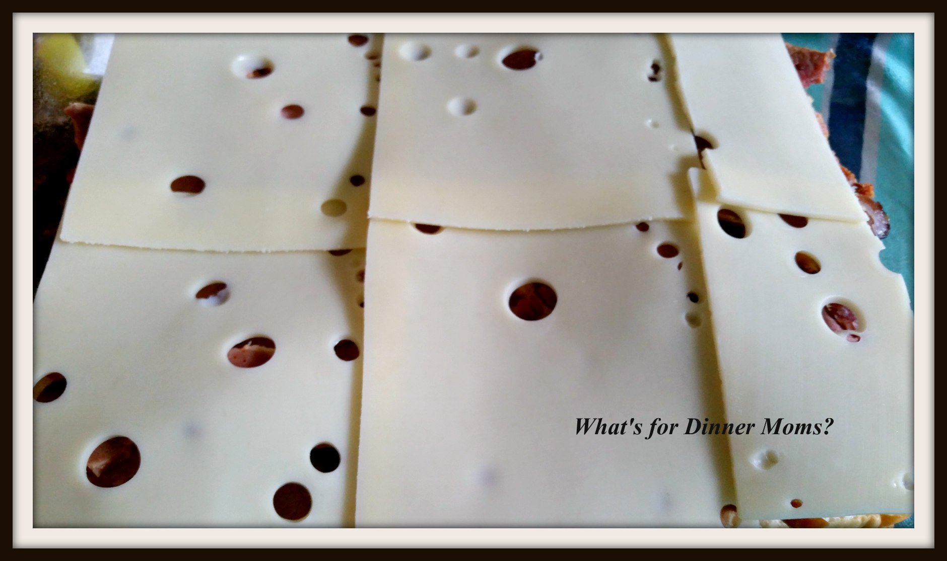 - Top the roll bottoms with ham. Place the sliced cheese over the top of the ham to completely cover.