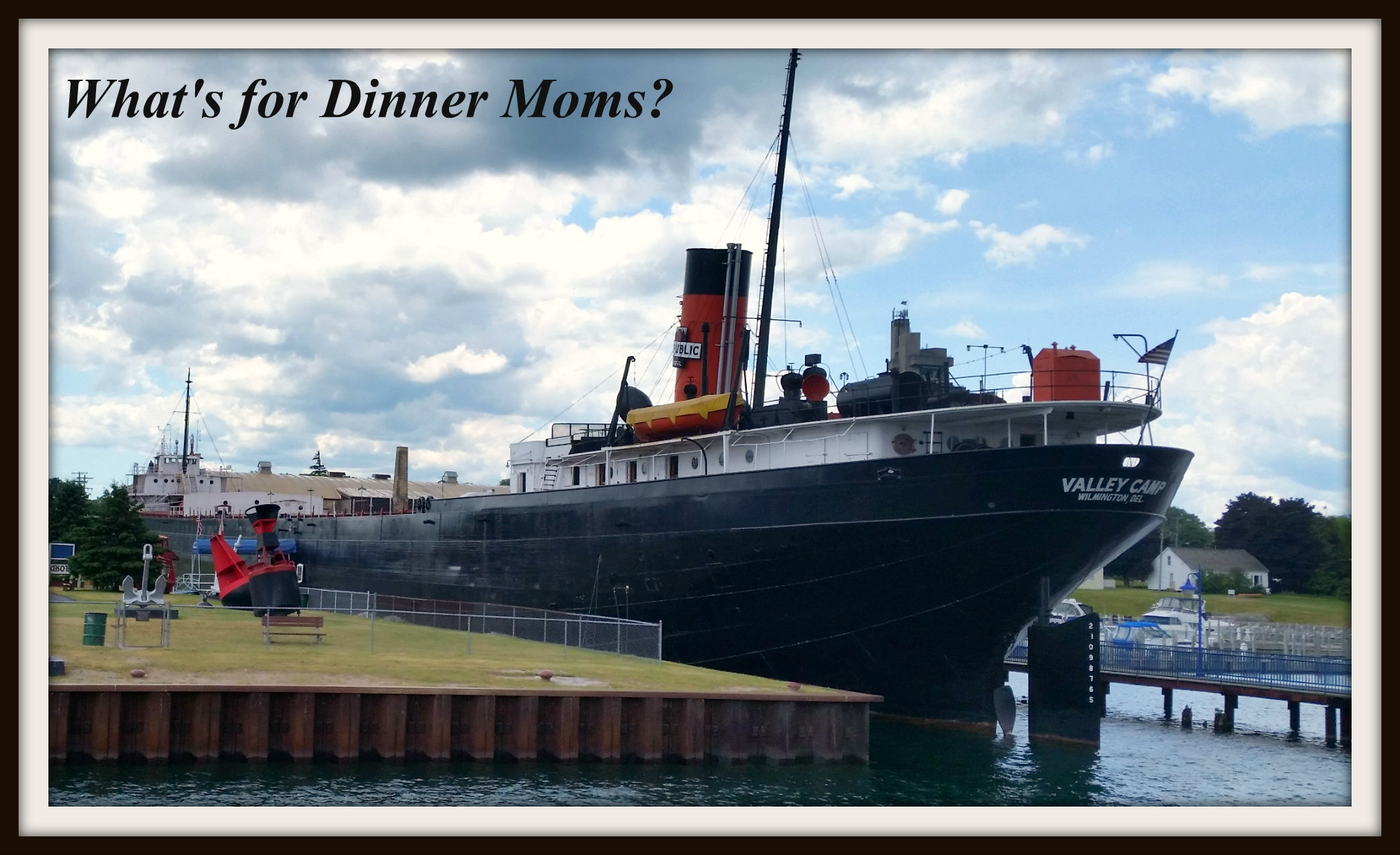 When we arrived at the Soo Locks Boat Tours Dock #1 we had 35 minutes until the next boat departed. Of course just as we pulled in the rain started. It wasn’t a sprinkle either. It was full, straight down rain. We were the only people waiting for the boat for the longest time. We heard thunder in the distance but saw no lightning and it passed fairly quickly although the sky stayed dark for a bit. A few people came in to buy dinner cruise tickets for the next evening while we were there but for a long time we thought we were going to be the only people getting on the boat.