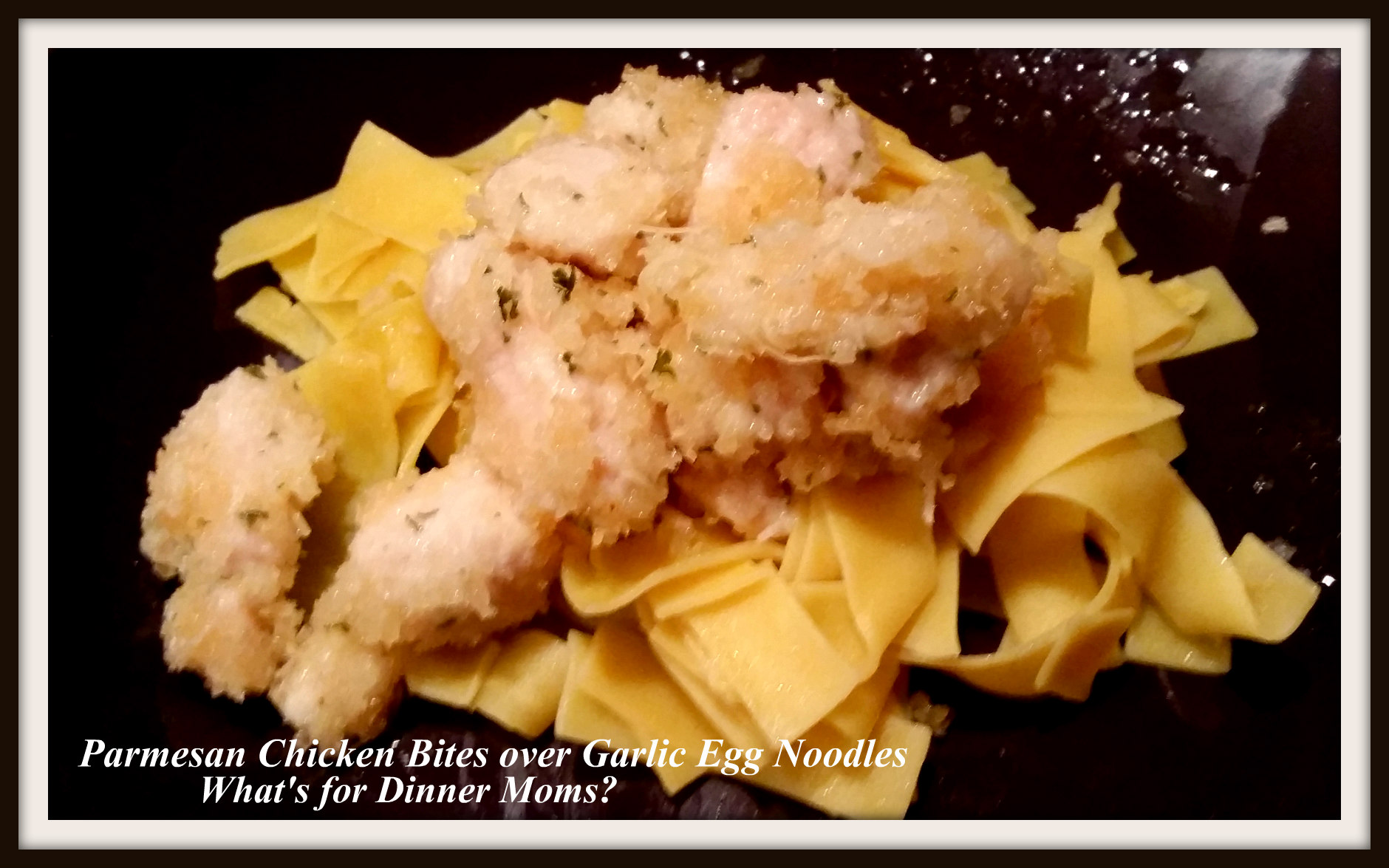 Parmesan Chicken Bites over Garlic Egg Noodles