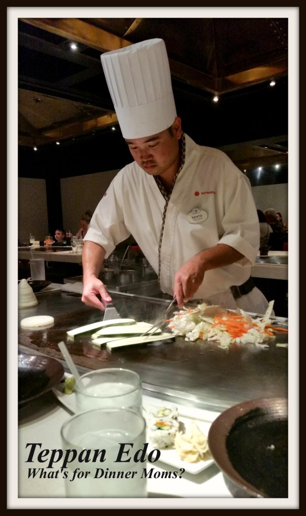 Teppan Edo is the Japanese Hibachi restaurant in the World Showcase in Epcot. My daughter and I had dinner at this restaurant two years ago on our mother/daughter trip to Walt Disney World. We loved it so much and thought the rest of the family would love it too. One thing that is great about Walt Disney World restaurants is that they are fairly consistent in quality of food and menu items over time. The items may change a little bit but for the most part everything stays the same so if you really liked something last time you were there chances are you can go back two years later and it will still be the same quality and flavors you remember.