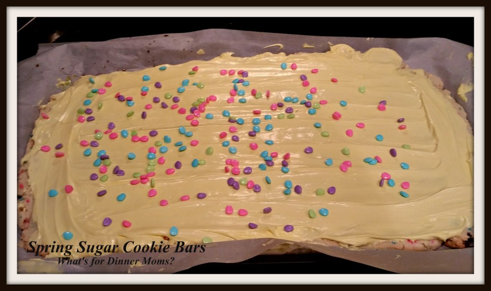 This is the recipe that I used for the St. Patrick’s Day cookies (click for link to original recipe) only with Spring colors. I love the addition of the sprinkles into the batter to add a bit of color. I used 3 oz of the Jimmy Sprinkles, not the sugar ones, in blue, purple and pink. It is hard to see in the picture. Next time I will use the whole jar.