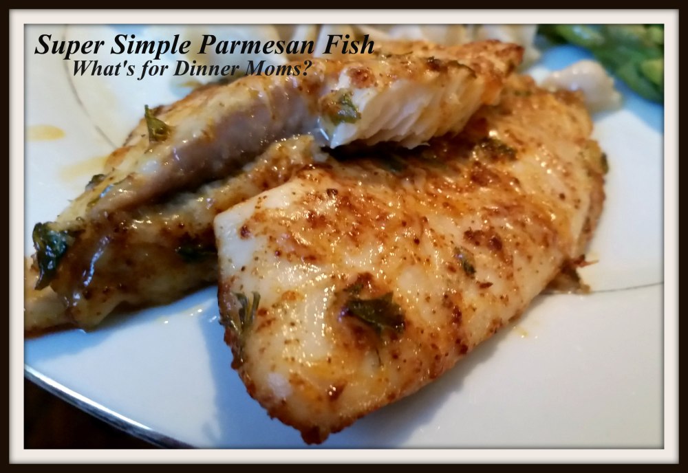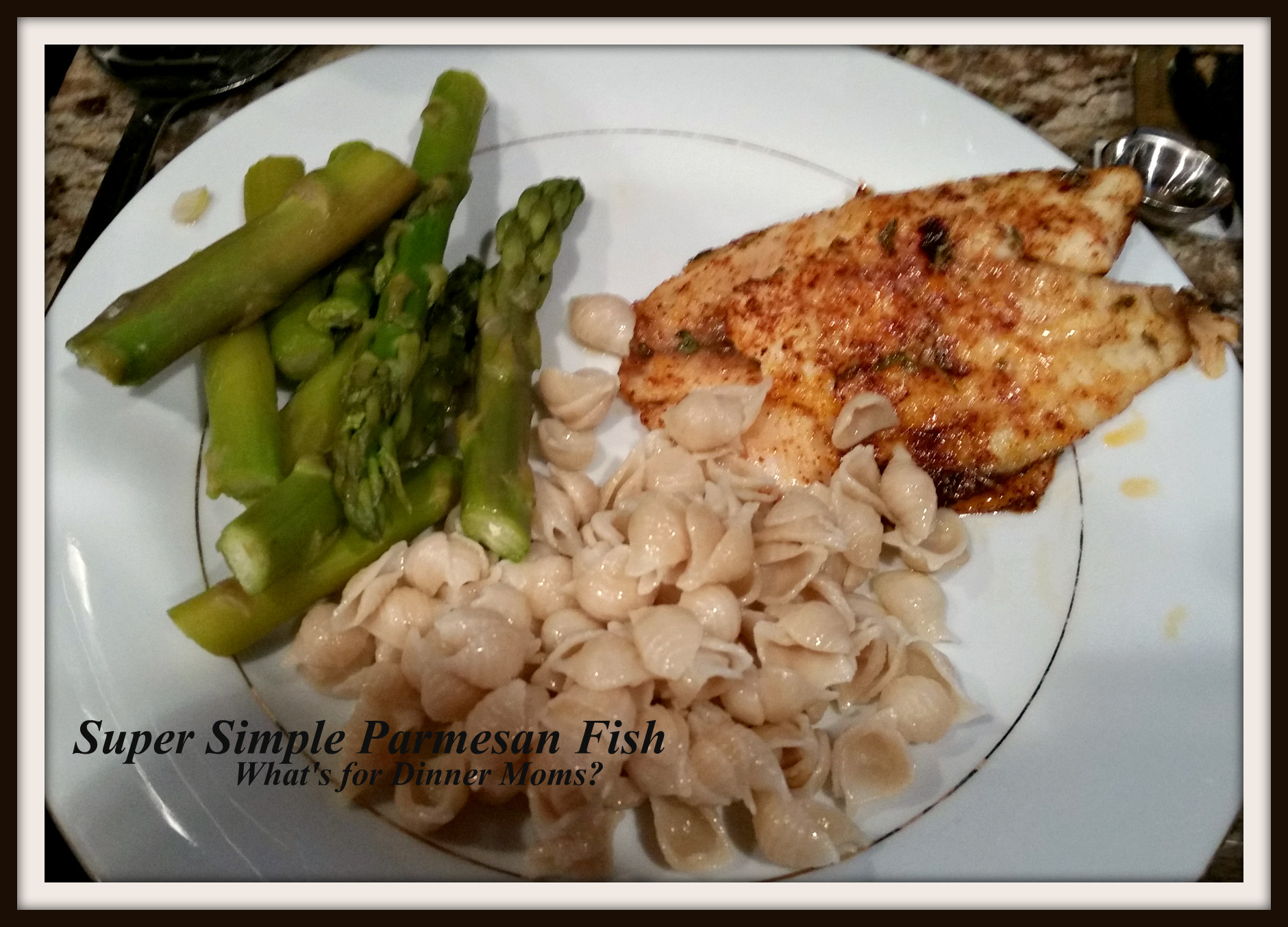 Super simple Parmesan fish (you can use your favorite fish for this dish – mahi mahi, white fish, tilapia, etc) because we had some fish on hand in the freezer and a block of Parmesan cheese. No need for bread crumbs or heavy white sauces for this dish. Easy, on hand ingredients for a dinner ready in about 20 minutes.