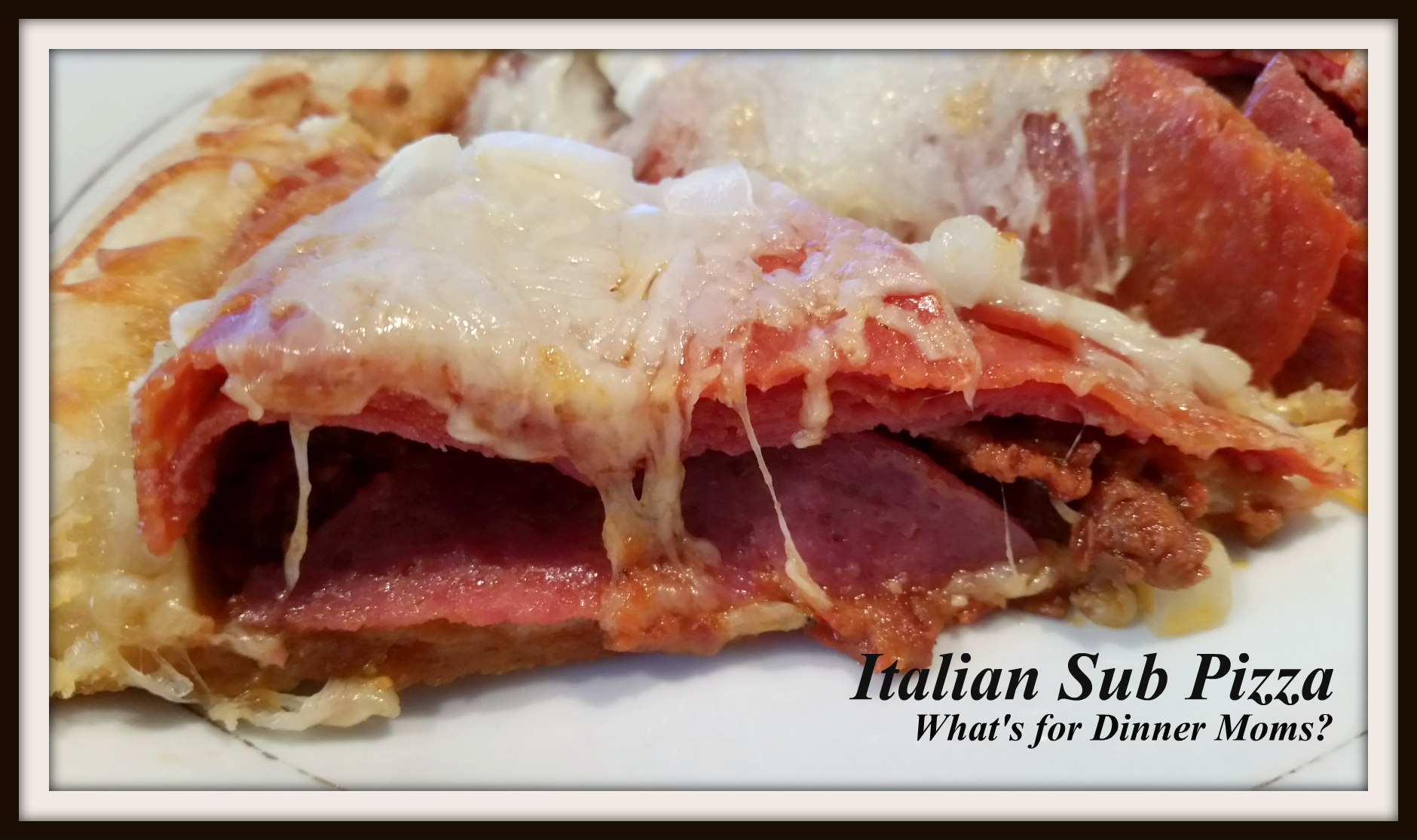 In a blog post earlier this year I wrote about how I get inspiration for dinners. One thing I said was I try to take something we like and turn it into something new. Make a favorite casserole into a sandwich, a sandwich into a pizza or a soup into a casserole. This is one of those dishes. We love Italian Subs and on the way to the grocery store the other day my son and I were discussing what could we make into a pizza, because that is what I was craving. He suggested several different pizzas but we all agreed this one sounded like the best one for the night.