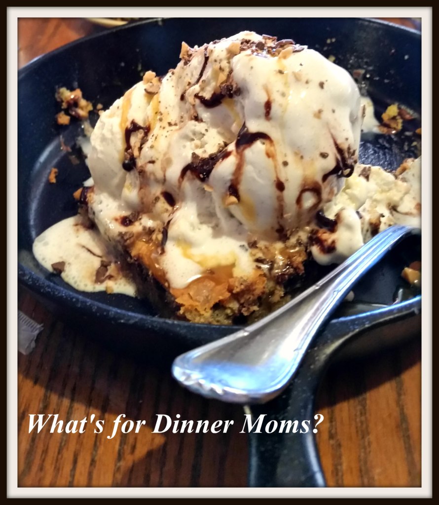 The dessert was an Ooey Gooey Toffee Cake which is hot chocolate chip toffee cookie in a skillet with vanilla ice cream, chocolate sauce and caramel sauce. It was really good but so heavy at the end of our meal. The four of us only ate about half of it. We are huge dessert fans too.