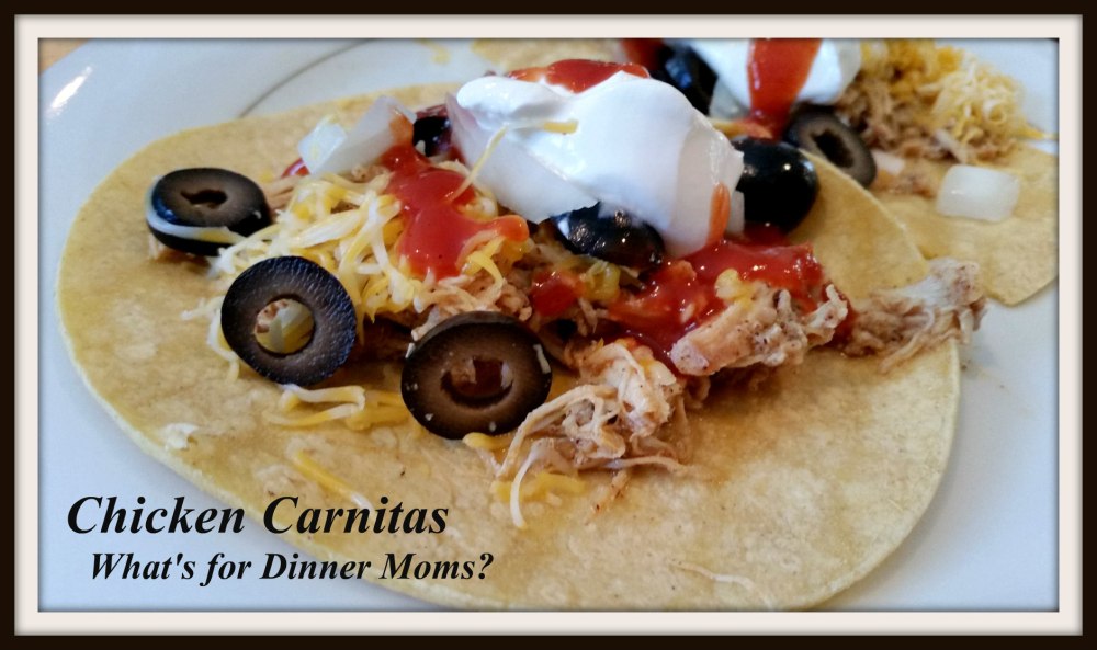 Carnitas, literally meaning “little meats,” is usually pork simmered until it is tender. It is then pulled apart and oven roasted until it is slightly crisp. In this case we didn’t have pork so I substituted chicken breasts. Chicken and ground beef are both on sale quite often in our area right now so most of my meals are going to have one or both of those in it for a while.