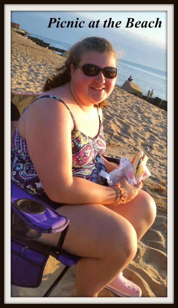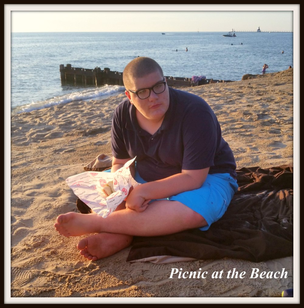 I love that the beach is only a mile from our house and we can just stop when we have extra time on nights like this. This was one of my summer bucket list items – To have a late dinner at the beach. Whether we made our own sandwiches or bought them I don’t care because we are spending time together having fun!