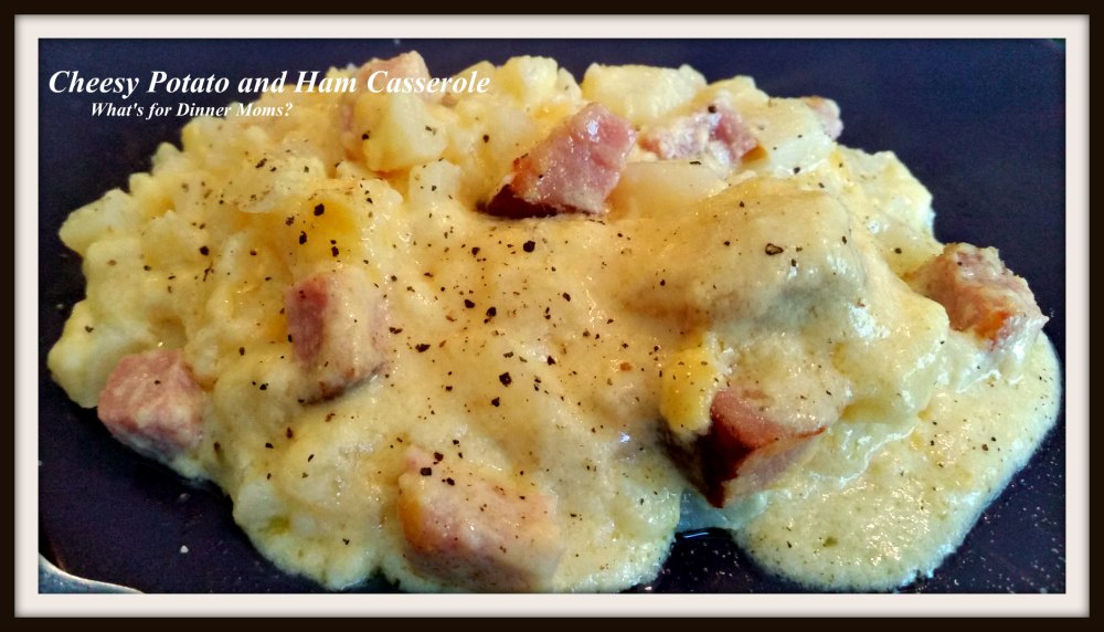 It is almost back to school time when we will be making more casseroles and slow cooker dinners. Still I wanted a comforting cheesy casserole last night. I think the thought of all I had to do today was overwhelming me. I had a bag of frozen potatoes and a ham steak in the freezer so Cheesy Potato and Ham Casserole was dinner.
