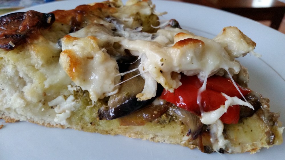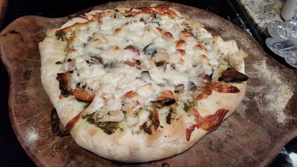 Roasted Vegetable, Pesto and Chicken Pizza