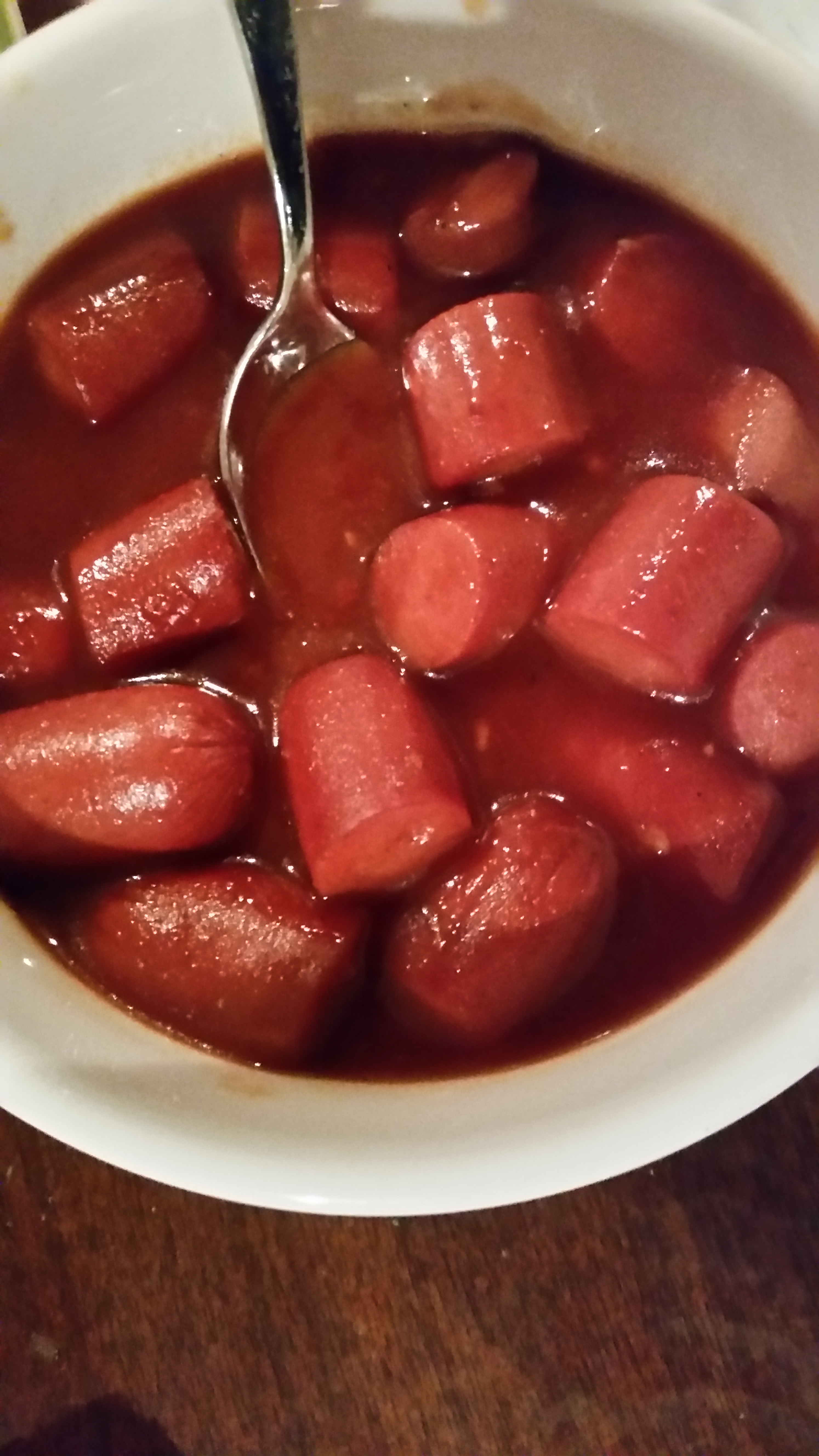 I still had some hot dogs in my freezer from our September barbecue and wanted to find a way to use some for an easy dish for parties. I love my slow cooker because it can keep food warm for a long period of time during a party. I used to have a divided crock that could keep 2 items warm at the same time. I need to get a new one for entertaining.