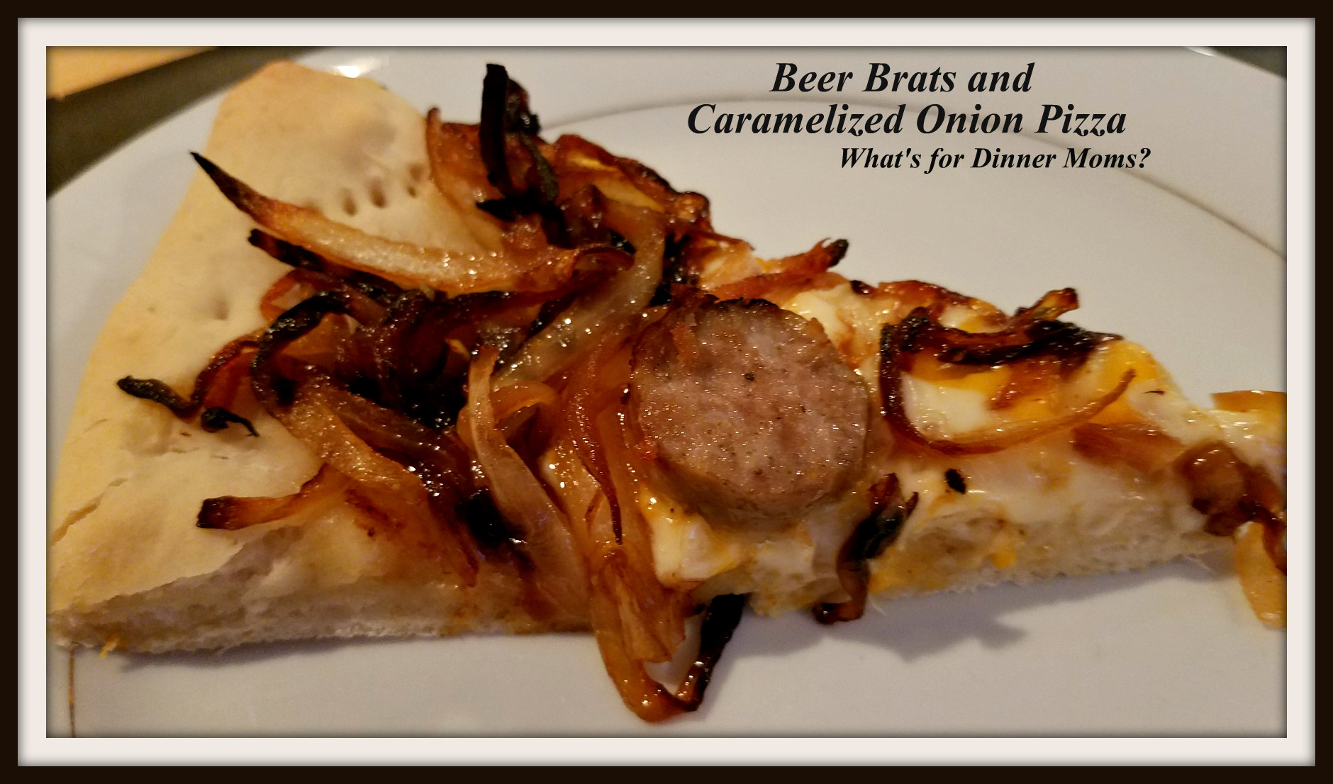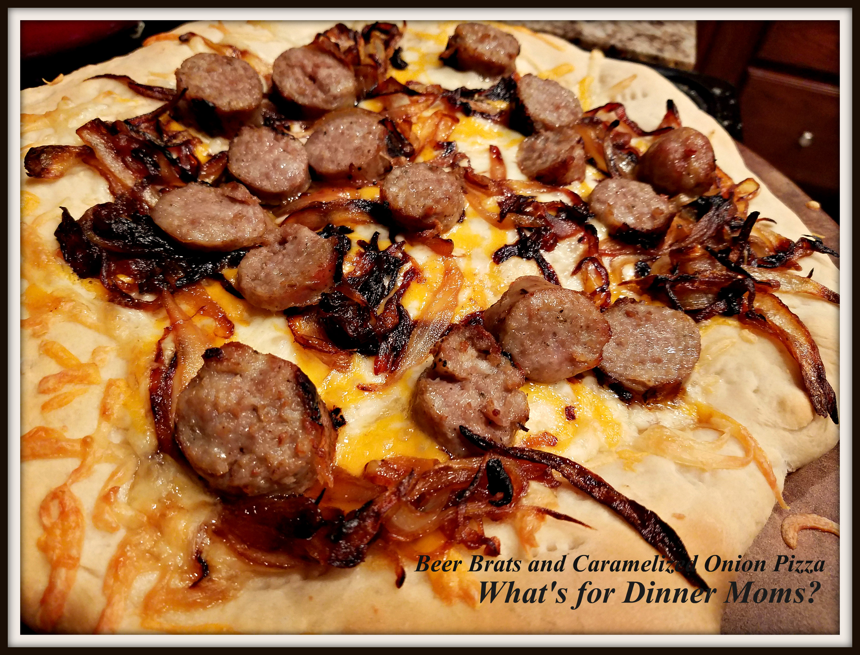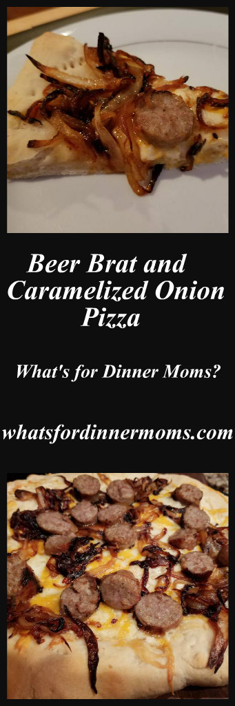 If you read my blog fairly regularly you know I LOVE caramelized onions. The sweetness, the savory taste is just perfect with a nice beer brat. We were out of rolls so what do I do? Improvise! Lets make this into a pizza!