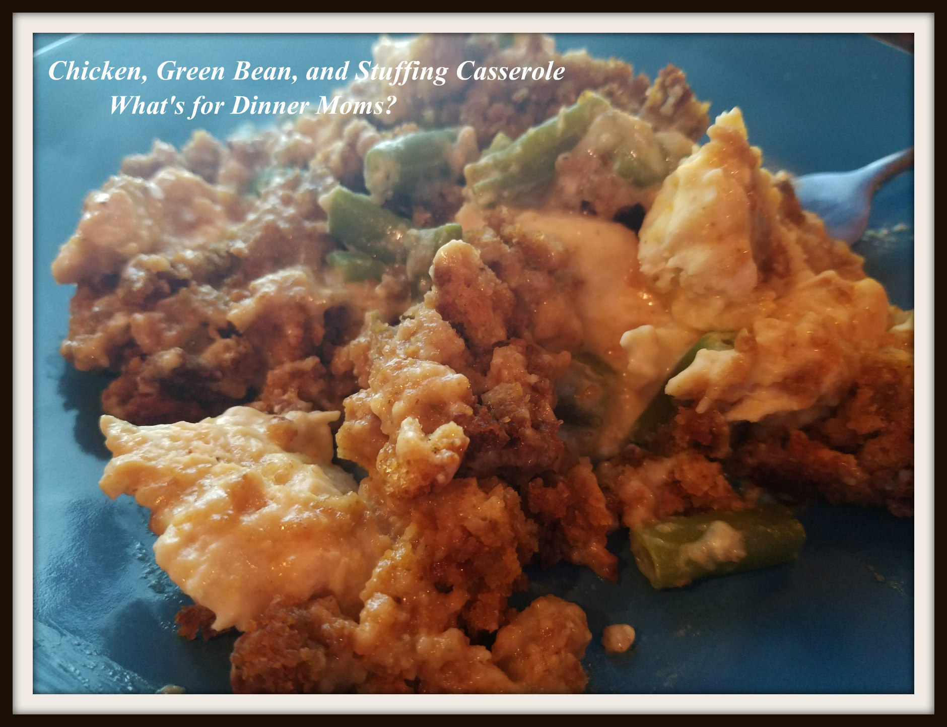 I usually make Chicken, Green Bean, and Stuffing Casserole by making homemade cream of soup (click for link to recipe) but this time they had cream soup on sale for $.90 a can and I couldn’t pass up the ease of making this casserole with the canned soup.
