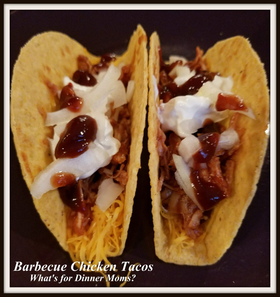 These were a super hit all around. I made them super simple to make by cooking the chicken in the slow cooker all day and adding the barbecue sauce about half an hour before we were ready to eat. Heat up the taco shells in the oven, shred some cheese, dice some onions, and voila, dinner is done.