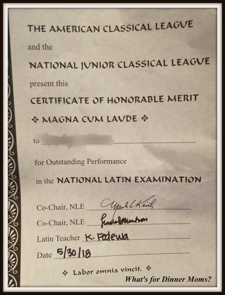 Thank you! He loves taking Latin and will be taking Latin 3 and 4 next year.