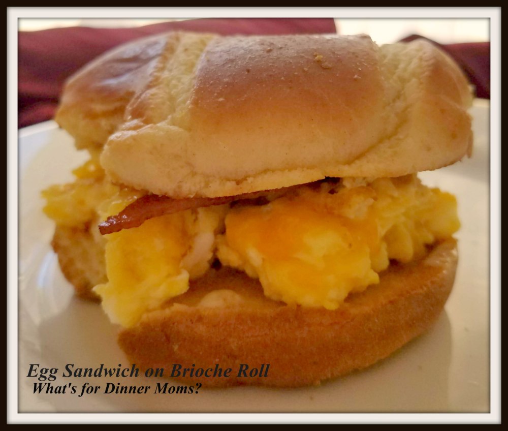 - Layer your cooked eggs on the bottom of the brioche roll bottom. Top with cheese and cooked meat. Add roll top to complete the sandwich.