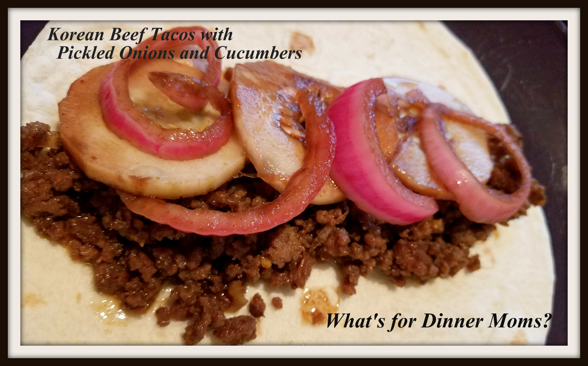 If you have read my blog over the past year or two you may have noticed my family really likes combinations of Asian spices with touches of something different. Still trying to keep those food costs down one of our favorite meats to go to is ground beef. But, we can only eat so much pasta and sauce or hamburgers before my family revolts. These Korean Beef Tacos with Balsamic Pickled Onions and Cucumbers was so delicious we didn’t need to add anything else to the tacos.