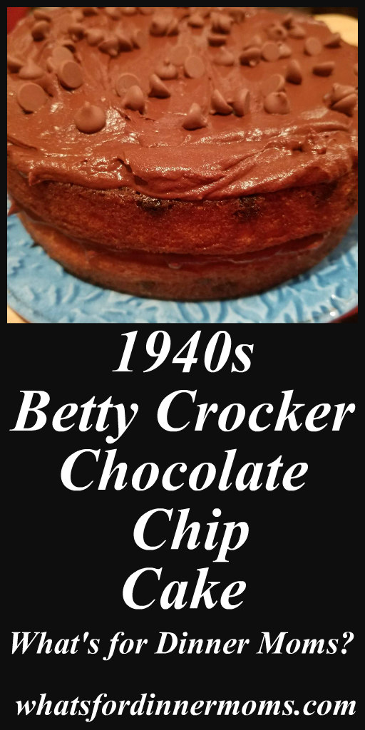 A rich and dense cake from the 1940s. Directions:1940s Betty Crocker Chocolate Chip Cake