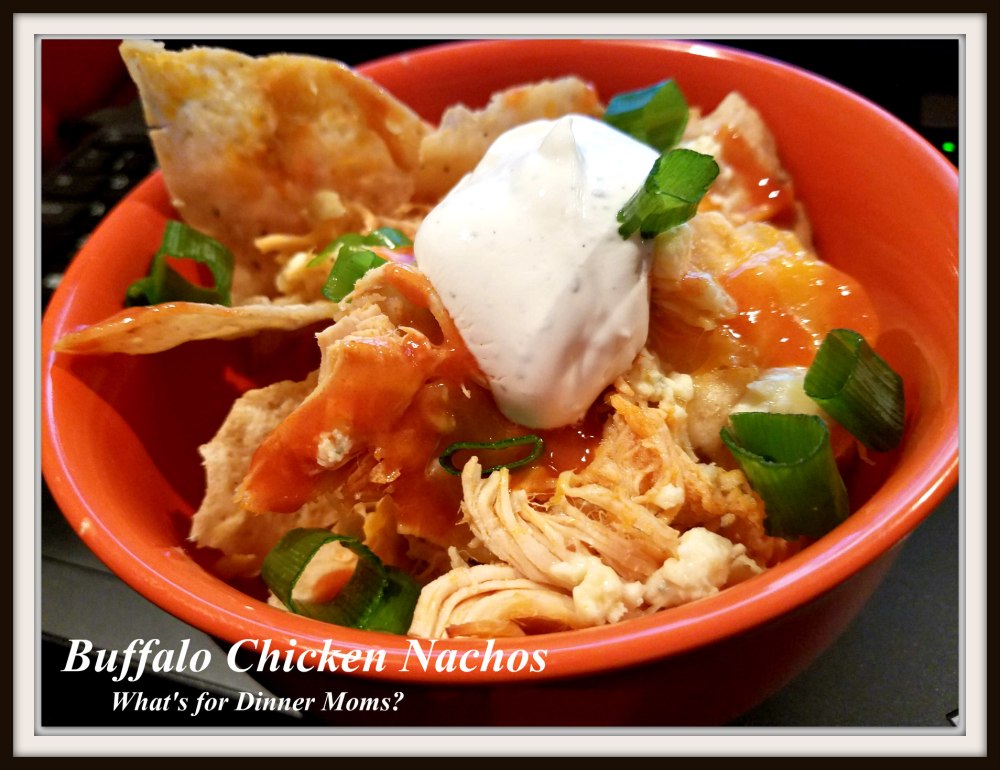 This was one meal we could all agree was simply perfect. Using the last bit of Buffalo Chicken and a bag of tortilla chips this dish was slightly spicy, crunchy and creamy with the addition of Colby-Jack and Blue Cheeses. Yummy!