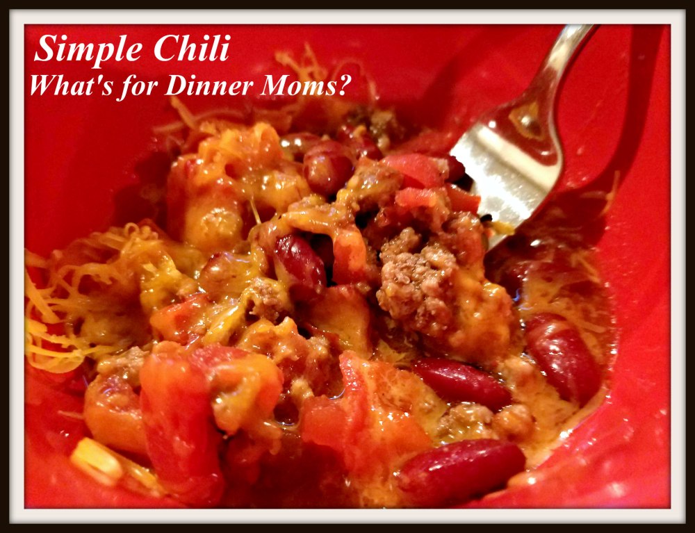 I did get a picture of the chili with cheese over it but forgot to get a picture of the sour cream and us eating it with tortilla chips.  Everyone liked this version, especially me because if wasn’t overly fussy to make. Other than browning the meat and onion in the skillet there was no thought to the dish.