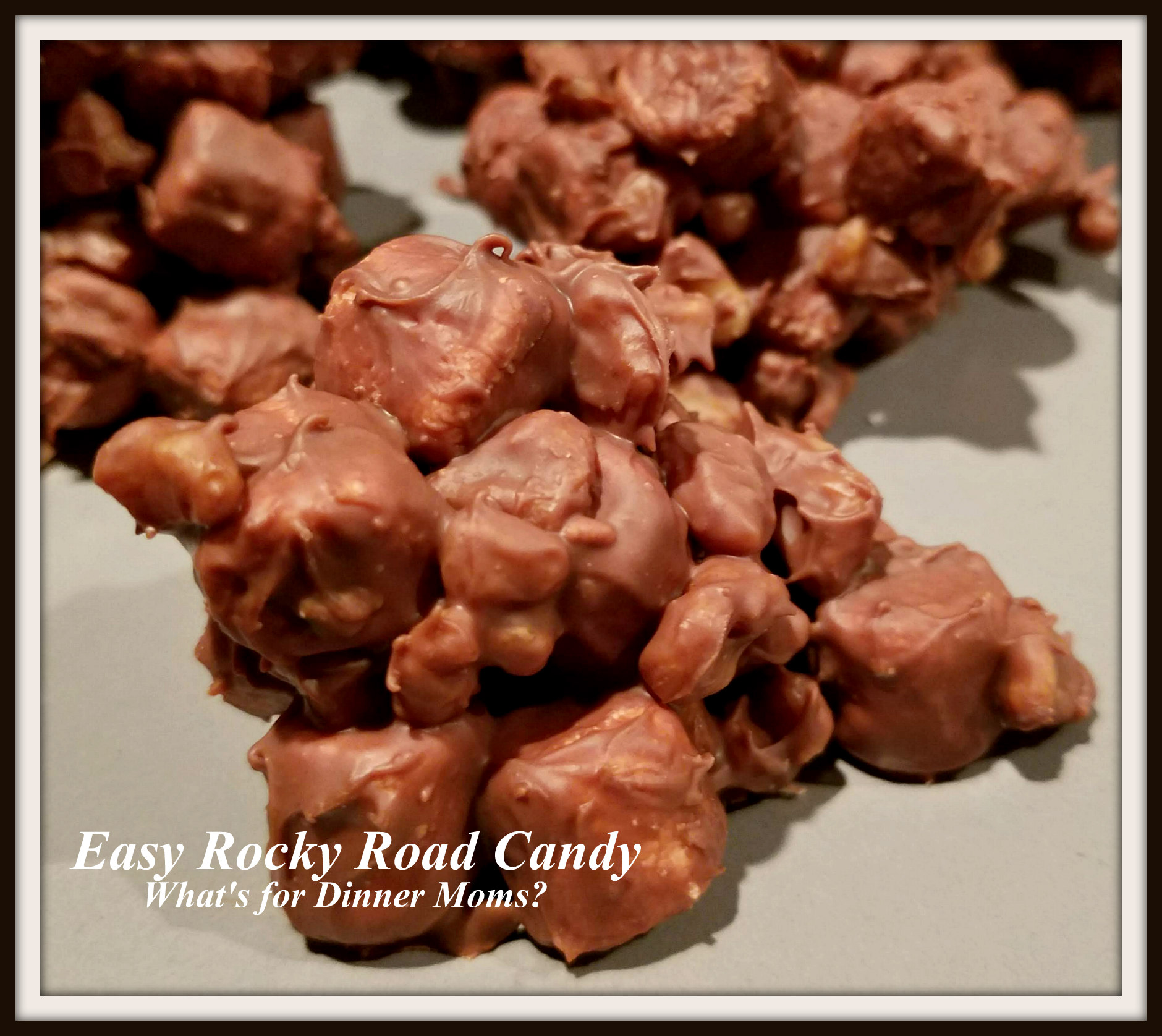 A simple chocolate candy that would make a great addition to any sweets tray or on its own. Ingredients: Directions:Easy Rocky Road Candy