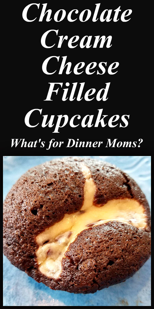 A yummy chocolate cupcake with a cheesecake like filling. Ingredients: Filling: Cupcakes: Directions: Bake 20-25 minutes or until cake portion comes out clean with a toothpick. Let cupcakes cool in pan for 5 minutes before removing and transferring to wire rack to cool completely.Chocolate Cream Cheese Filled Cupcakes