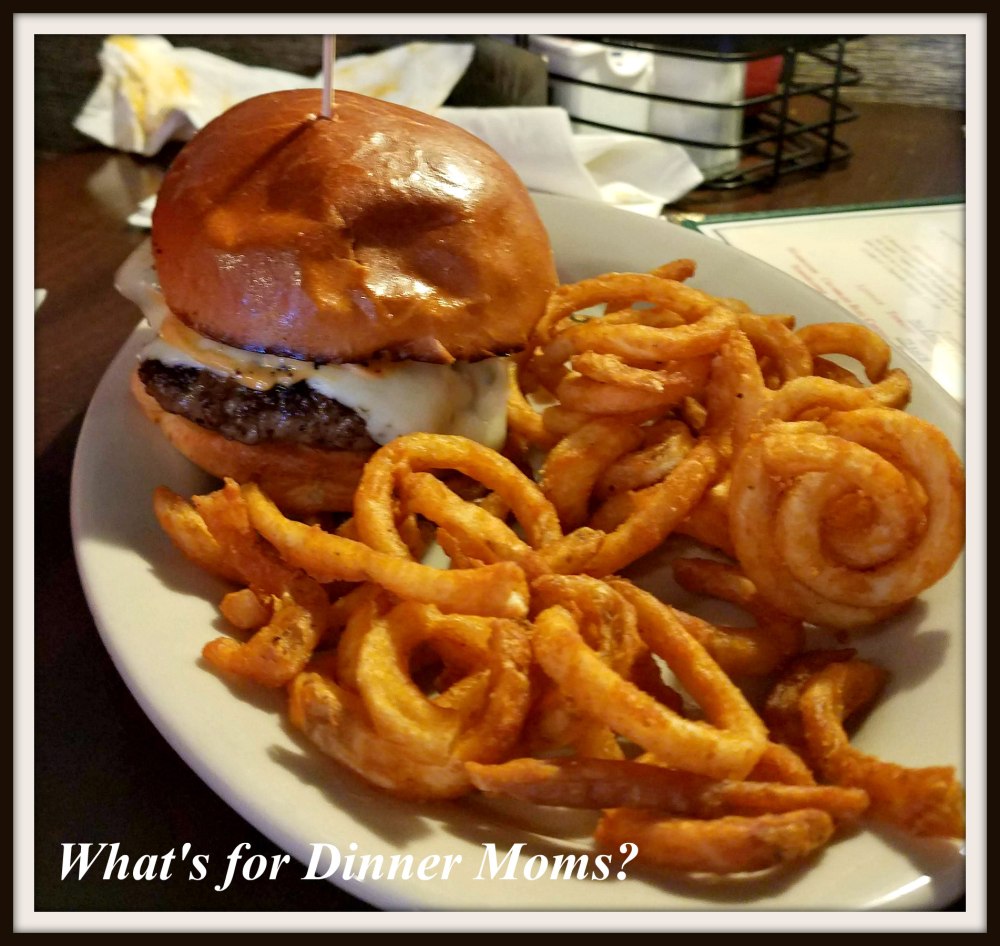 What’s for Dinner? This Smokehouse Burger was a charbroiled Burger Topped with House Smoked Andouille Sausage, Caramelized Onions, Melted Pepper-Jack Cheese, and Chipotle Mayo on a Grilled Brioche Roll with curly fries on the side. My son was wishing for a bit more flavor from the sausage but thought it got lost among all the other flavors but it was still a good burger.
