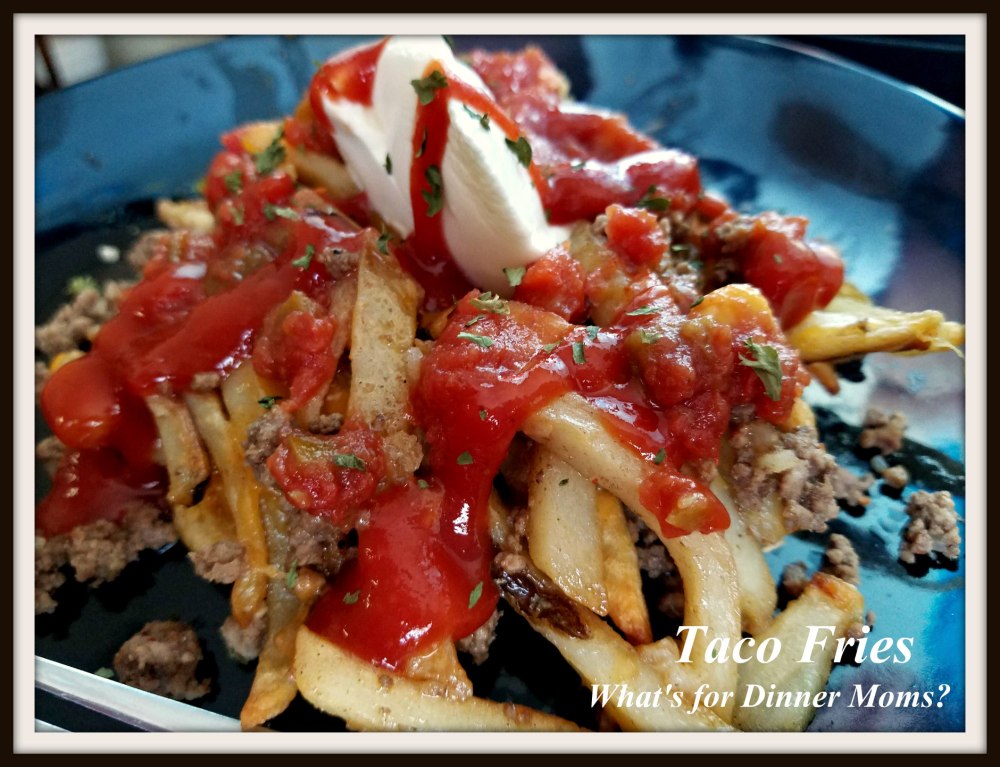I asked my daughter to go down to the freezer and bring up ground beef and french fries. I wasn’t sure what I was going to make. Originally it was burgers and fries, which we almost never have simple burgers and fries. But, when she came upstairs she asked if we could have some kind of loaded french fries like we had at a small restaurant in Wisconsin. I can do that! So, we made Taco Fries.