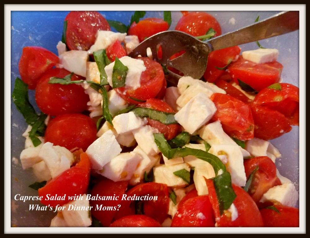 - In a bowl mix tomatoes, mozarella, and basil leaves. You can serve the balsamic reduction on the side or drizzled over the dish. Your choice! Refrigerate until ready to serve.