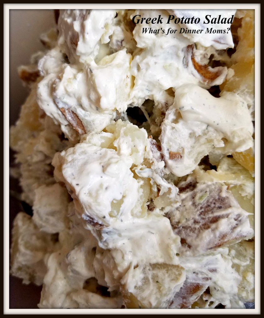 Time for summer salads! I love potato salads but am always looking for new ways to make them. This potato salad is potatoes mixed with Tzatziki which is a favorite in our house. I tend to add MUCH more dill and garlic than is called for in this recipe but I went light on the seasonings for the recipe because we love it with lots of garlic and dill but when I make it for guests I tend to err on the side of caution.