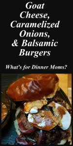 This burger was super packed with flavor and texture. The creamy goat cheese, the savory onions, and the tang of the balsamic reduction are amazing together! Both kids devoured two burgers. I could barely eat one it was so filling with a nice toasted pretzel roll.