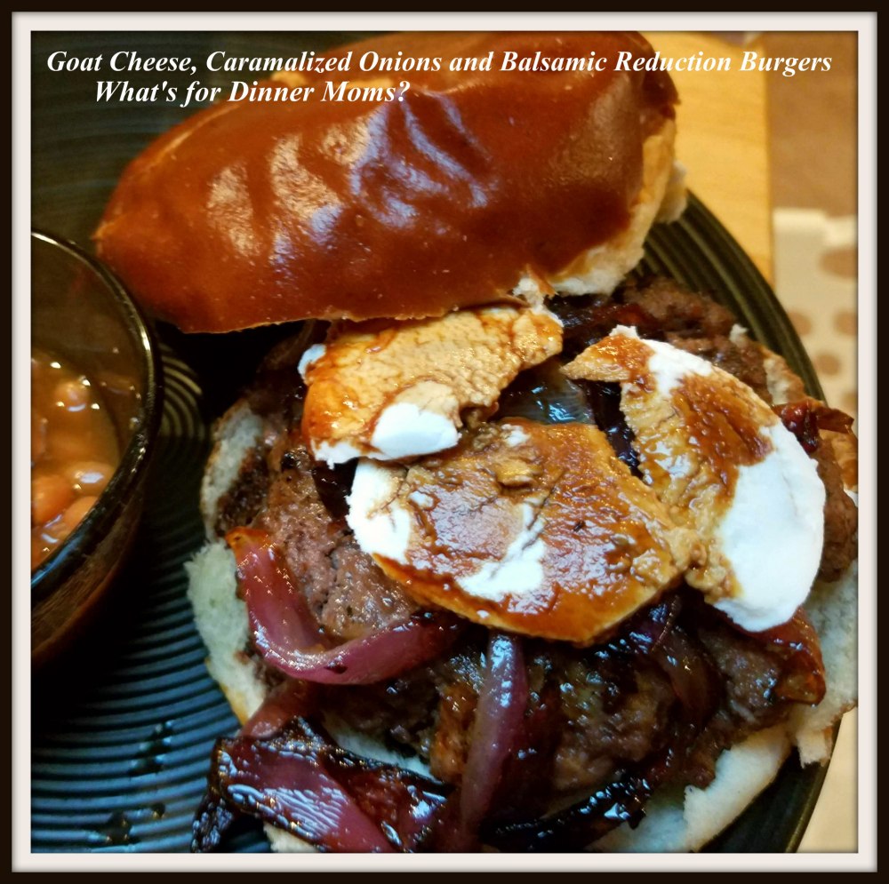 Goat Cheese, Caramelized Onions, and Balsamic Reduction Burgers