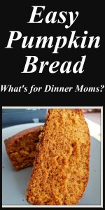 A delicious bread that is a great breakfast treat or after school snack. Ingredients: Directions:Easy Pumpkin Bread