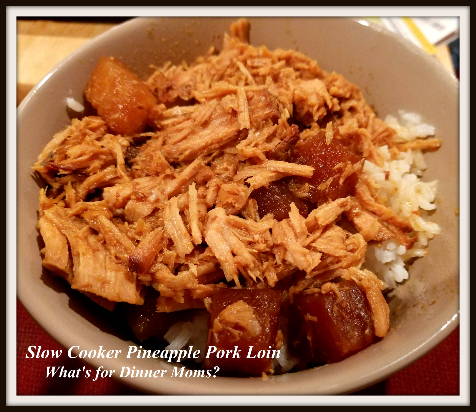The slow cooker is out! It is that time of year (although I like to use mine year round!). This is a super simple dish that isn’t anything amazing but is more a nice warm comfort food. The pineapple soaks up the soy sauce and the pork mixed with the pineapple juice and brown sugar makes it flavorful. I cooked mine all day so it shredded easily. I prefer to be able to slice the pork so if you prefer yours sliced don’t overcook the pork. It slices easily if you brown it first in a skillet on all sides before putting it in the slow cooker and then cook to 145 degrees.