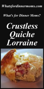 Breakfast for dinner two nights in one week? Yes! We are still working on emptying our pantry and using the food we have on hand. My family loves quiche (or egg pie as we have called it forever). It is a great simple meal and without a crust is how my family prefers it. I love the crust but they prefer the cheesy edge on the top of this dish.